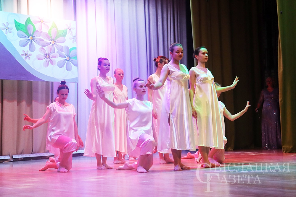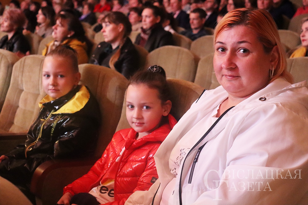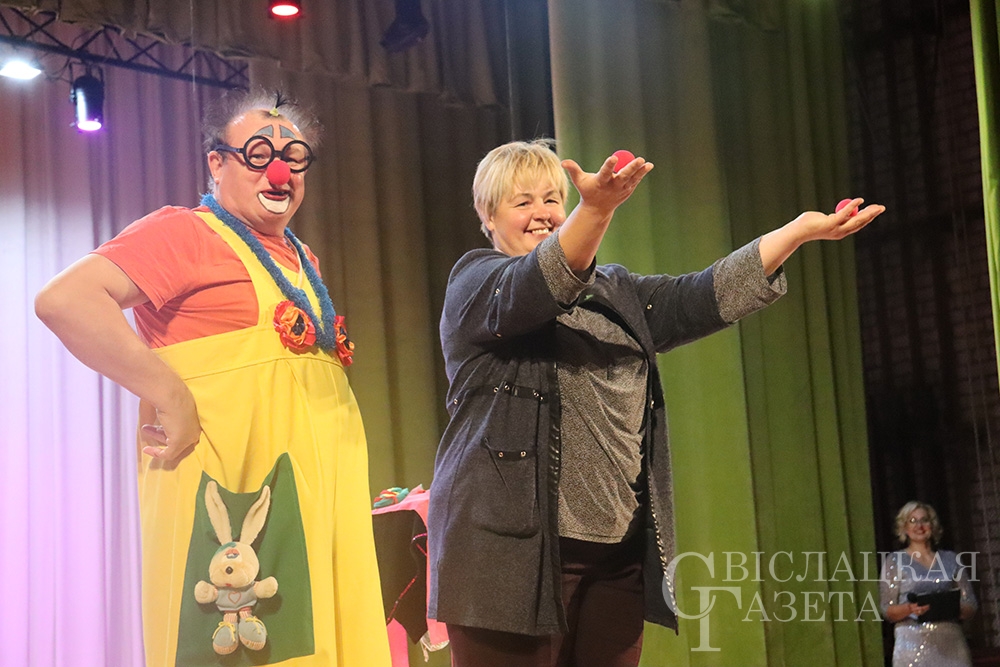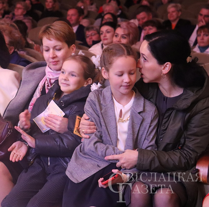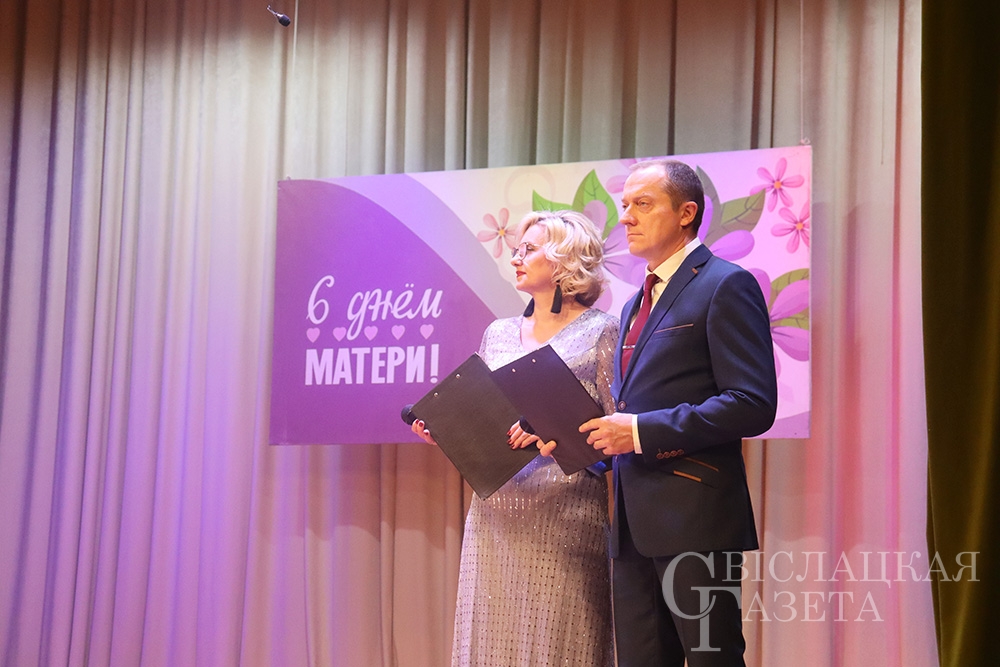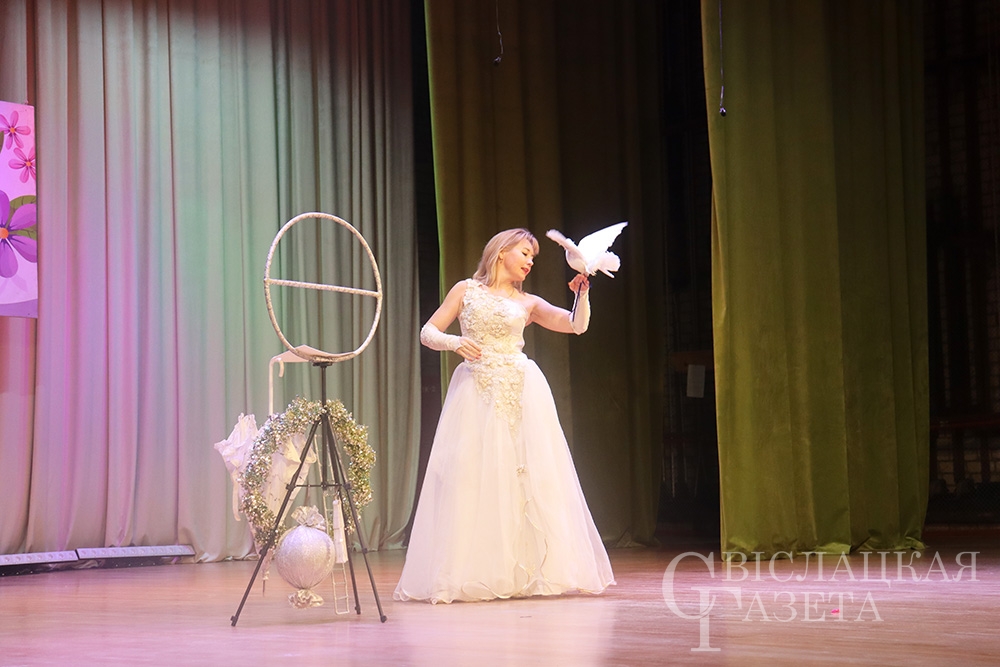 А далей зала акунулася ў мора творчасцi i незабыўных уражанняў. Свята, якiм запраўлялi вядучыя Iрына Гутар i Дзмiтрый Салдаценкаў, атрымалася вельмi насычаным. Яно было напоўнена разнастайными сцэнiчнымi нумарамi. Хочаш – песня, жадаеш – танец, вершы ў выкананнi дзяцей – таксама ў сцэнарыi, любiш клаўнаду – калi ласка, падабаюцца дрэсiраваныя галубы – сустракай, да душы сола на саксафоне – атрымлiвай асалоду!.. Сапраўдны букет добрых эмоцый пастаралiся падарыць гледачу артысты раённага цэнтра культуры i iх калегi з Гродзенскай абласной фiлармонii. I ўсё гэта гучала ў гонар матуль!
