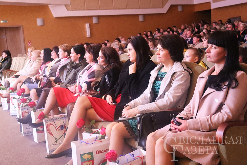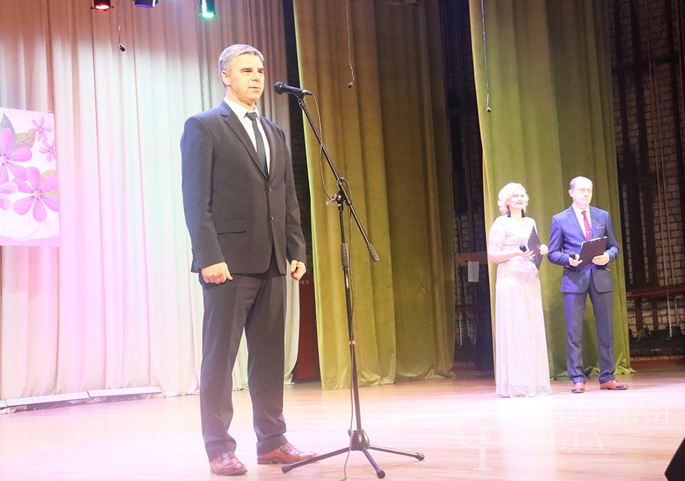 Да прысутных (вядома, у зале пераважную большасць складалi жанчыны) з вiншаваннямi звярнуўся старшыня райвыканкама Аляксандр Вярсоцкi:
