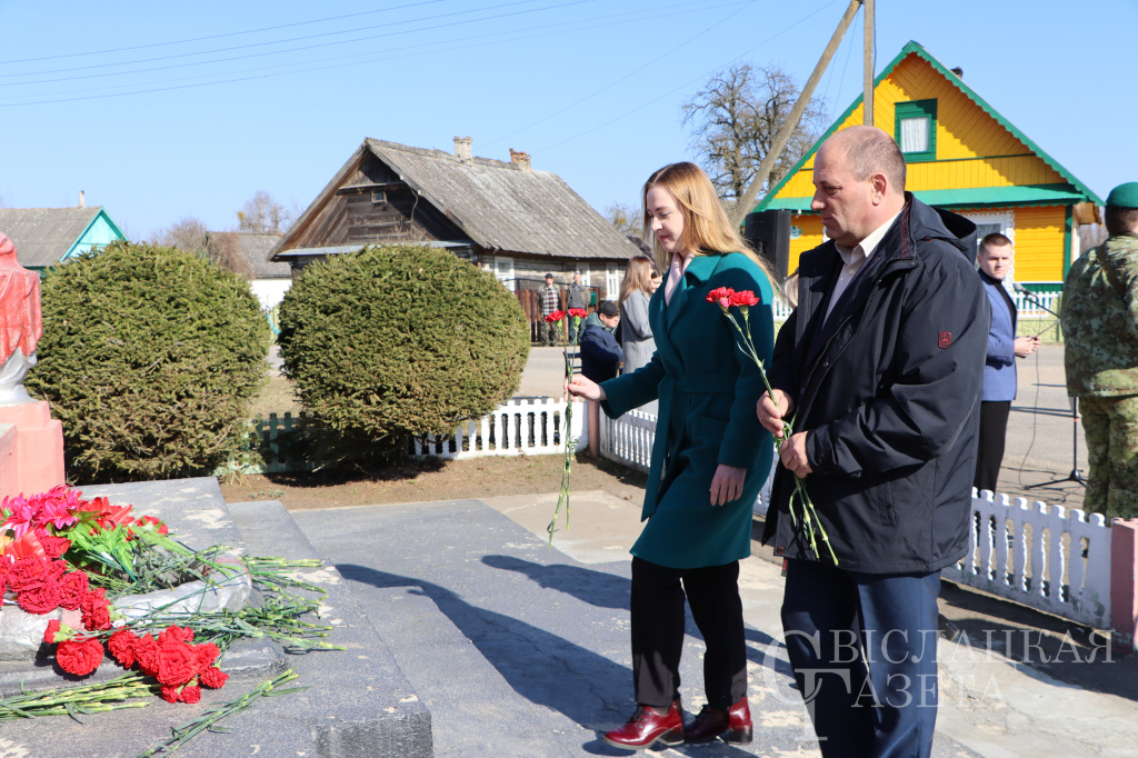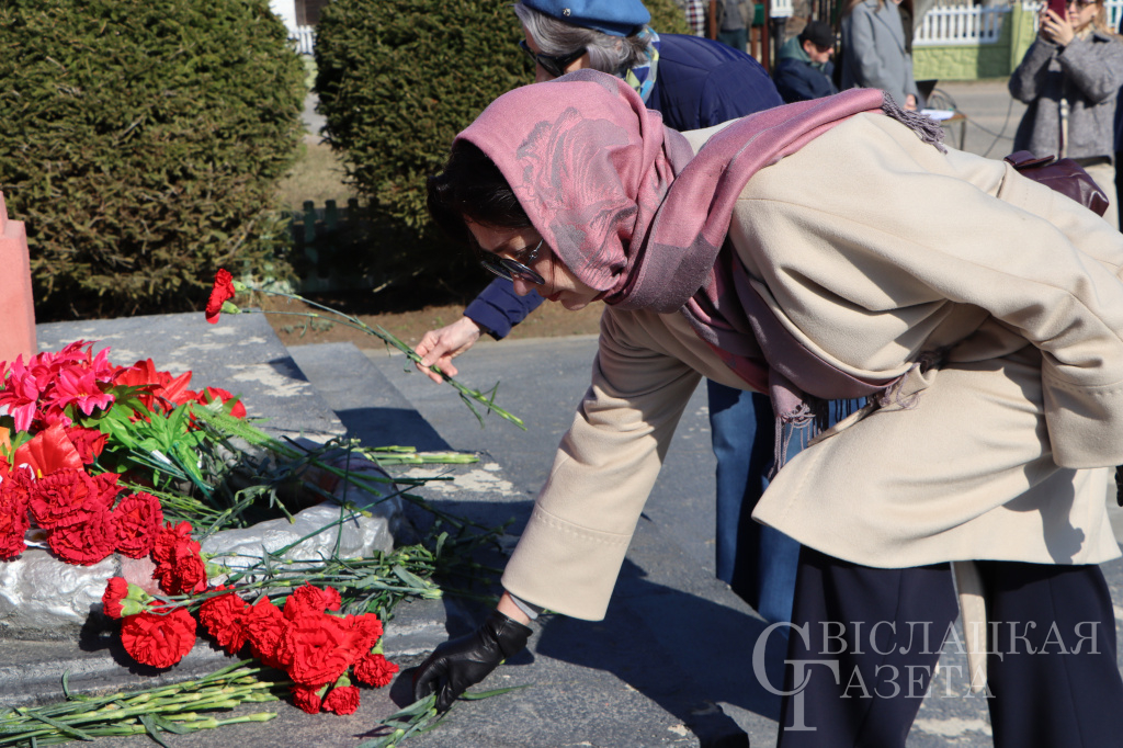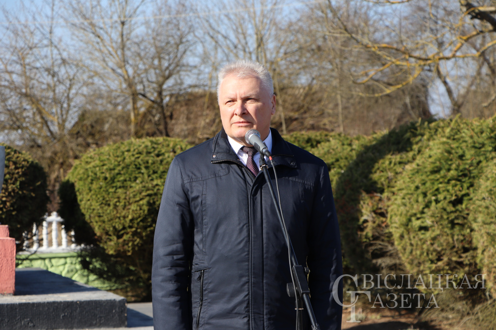 – Одной из самых трагических страниц в истории белорусского народа является Великая Отечественная война, – подчеркнул Евгений Кизелевич. – За три года оккупации гитлеровскими войсками и их пособниками проводились в жизнь планы по уничтожению населения Беларуси. Сюда входило создание невыносимых условий для жизни, создание лагерей смерти, расстрелы граждан за любое неповиновение и оказание противодействия немецким солдатам. Как показывает история, Хатынь – это не единственная деревня, которая была уничтожена вместе с мирным населением. За время расследования уголовного дела о геноциде белорусского народа подтверждено уничтожение 12890 населенных пунктов, из них 290 повторили героическое участь Хатыни. На территории Свислочского района за годы оккупации полностью или частично было уничтожено 29 населенных пунктов, в том числе проводились убийства мирного населения. Эти факты являются не только цифрами. Они показывают всю суть агрессорского режима, направленного на уничтожение и очищение белорусской земли. Вместе с тем, благодаря усилиям белорусского народа, удалось победить не только немецко-фашистскую Германию, но и в дальнейшем восстановить и развить Беларусь. Поэтому надо помнить происходящее события, чтобы они больше никогда не повторились. Такие мероприятия, как сегодня, позволяют передать память молодому поколению и показать, что в годы войны белорусским народом было проявлено неимоверное мужество и героизм.