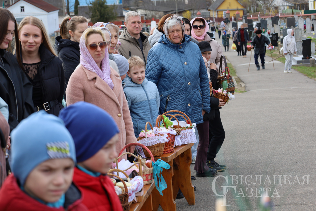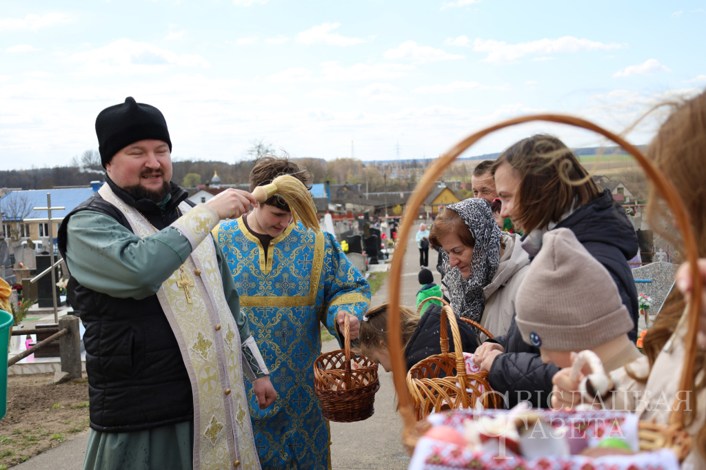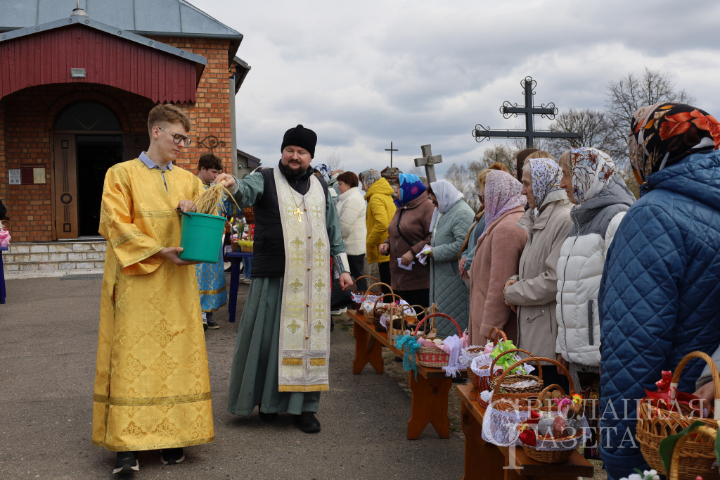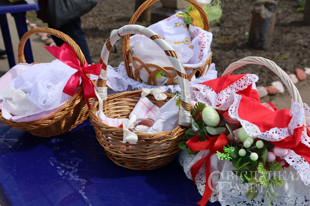 В Великую субботу православные пришли в церковь Воздвижения Креста Господня освятить яйца, куличи, хлеб, соль и другие продукты.