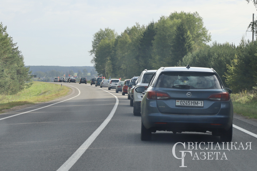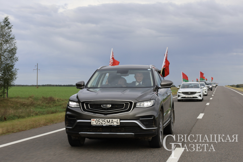 Десятки украшенных государственной символикой машин отправились по маршруту в городской поселок Порозово. Завершился автопробег в Свислочи.