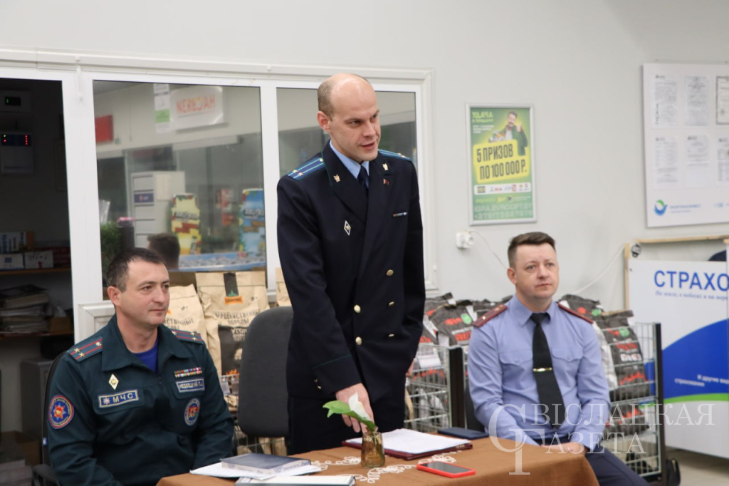 Районная информационнo-пропагандистская группа под руководством заместителя председателя райисполкома Юрия Куликова провела встречу с коллективом магазина «Евроопт» ООО «Евроторг». В составе группы также начальник райотдела МЧС Павел Недвецкий, прокурор Свислочского района Евгений Кизелевич, начальник штаба Свислочского РОВД Денис Павлюченя.