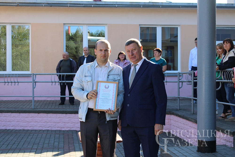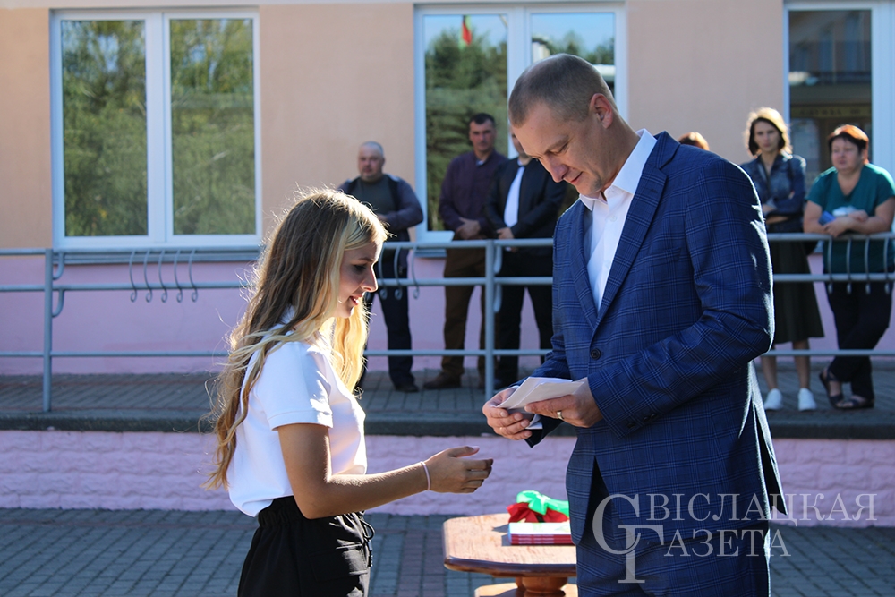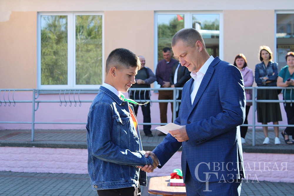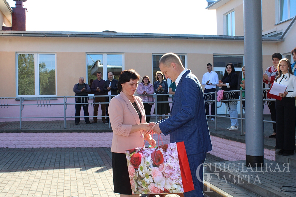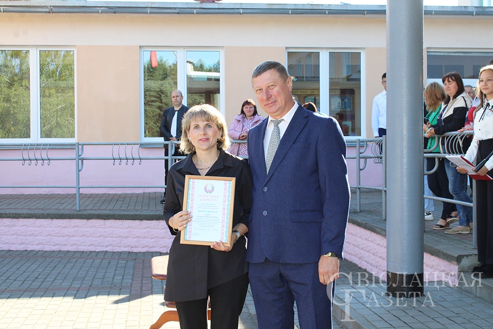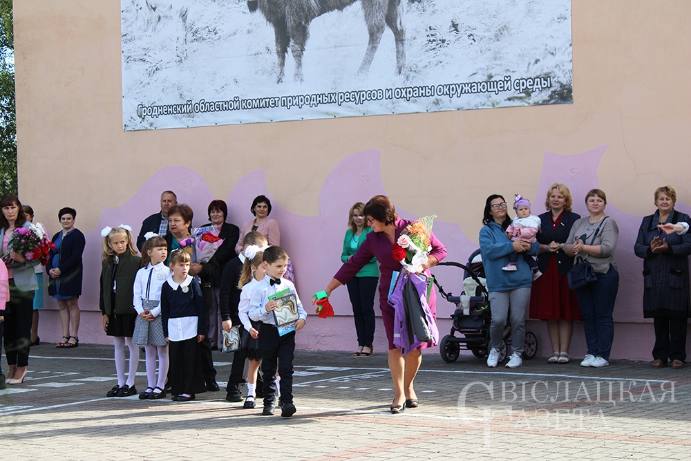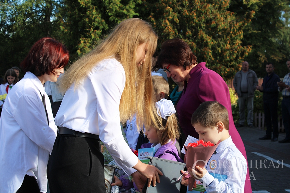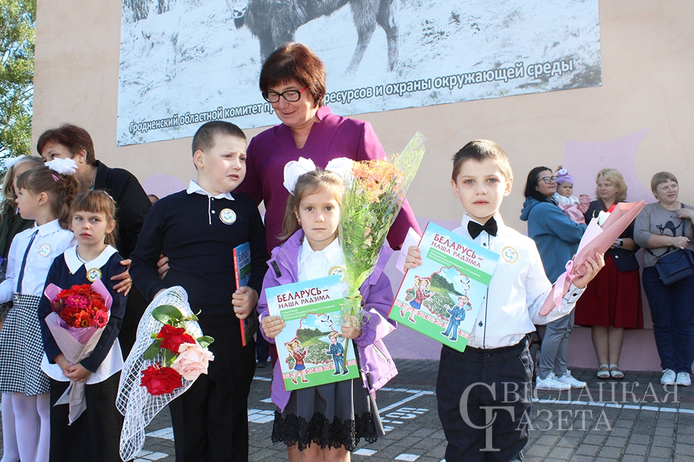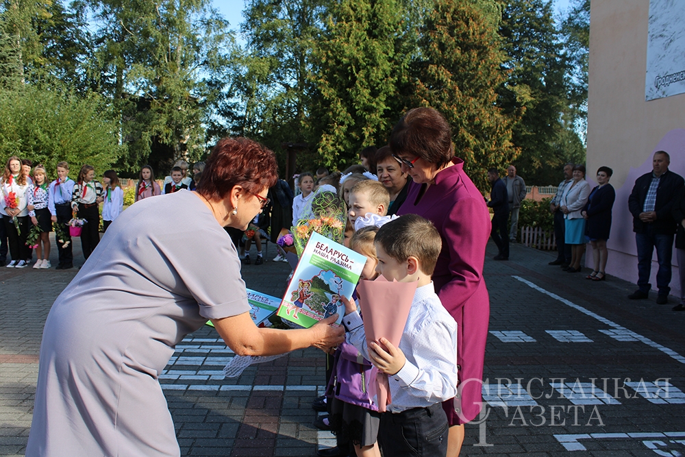 Конечно, не обошлось без подарков. Самый главный – книгу «Беларусь – наша Радзіма» от Президента страны Александра Лукашенко – вручила первоклассникам директор школы Алла Гончаревич. Отмечен на линейке труд двух педагогов. Почетные грамоты отдела образования вручили Татьяне Савко, учителю белорусского языка и литературы, и Владимиру Ботвичу, учителю трудового обучения.