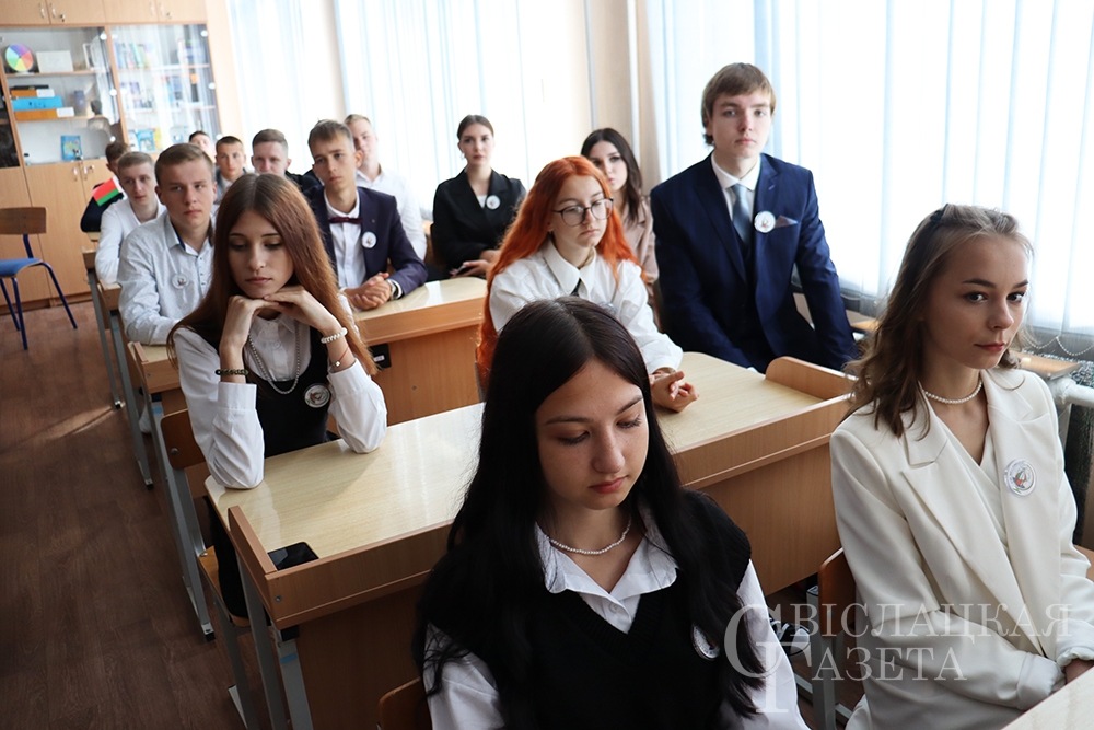 Александр Людвигович рассказал школьникам об важности исторической памяти при формировании интереса к истории своей страны и малой родины. Память – это прочный фундамент общества, который сохраняет в человеке благодарность и любовь к родному уголку земли, где получил все необходимое, что делает его настоящим гражданином своей страны. Глава государства не раз подчеркивал, что истина рождается в диалоге, поэтому он всегда обсуждает важные вопросы с людьми, которые будут создавать будущее нашей страны. Год исторической памяти – это повод для разработки и реализации проектов, направленных на популяризацию истории и культуры белорусского народа.