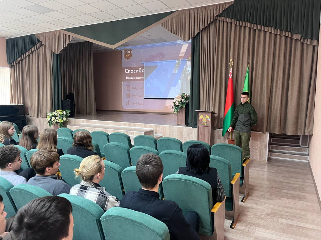 А будущий офицер, курсант 4-го курса Даниил Бебех, поделился своим личным опытом поступления и обучения, рассказал о повседневной жизни курсантов, совмещении учебной программы с занятием спортом.