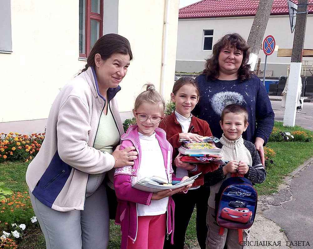 На этот раз молодожены Дмитрий и Жанна Середовы в день своей свадьбы передали детям семьи Раецких подарки к началу учебного года. Всего в семье воспитывается шестеро детей, трое из них школьники. Первоклассник Алексей получил подарок и от работников центра: новый школьный рюкзак со школьными принадлежностями.