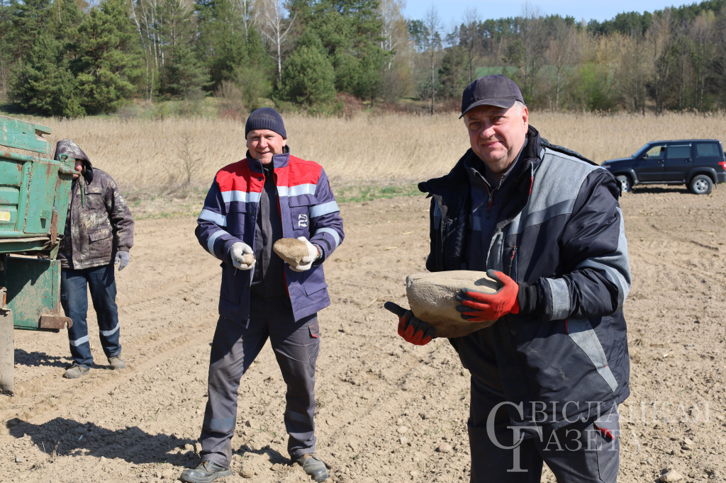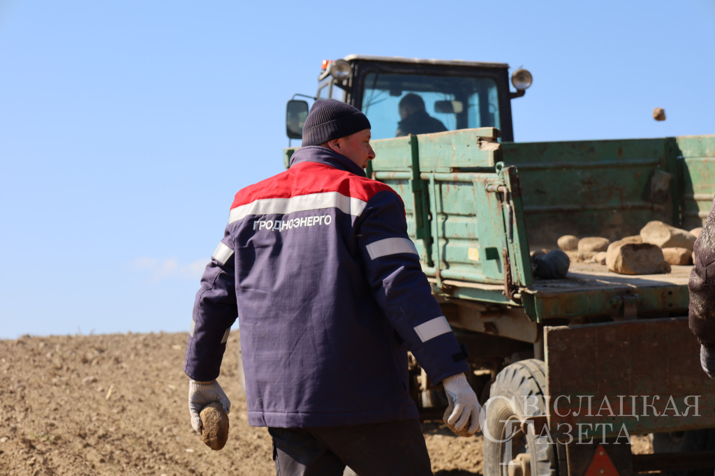 Субботник не остался без внимания и у коллектива Свислочского РЭС. Пятнадцать сильных мужчин четко и слаженно работали на уборке камней недалеко от деревни Пуцки на полях ОАО «Акр-Агро». Совместными усилиями энергетиков загружено 6 прицепов камней.