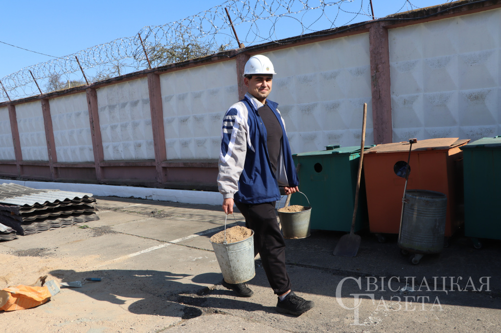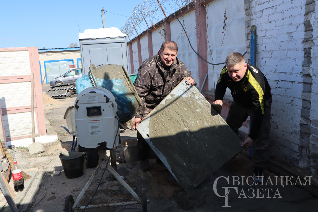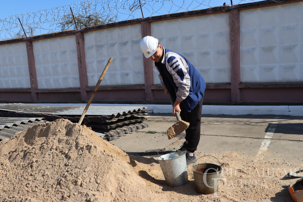 Умения необходимо было приложить для бетонирования площадки под санитарные нужды. С чем стражи порядка справились на отлично. Как и с покраской металлического забора.