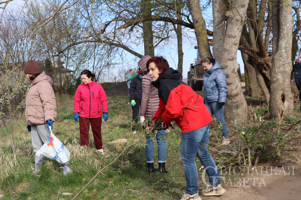 Представители разных структурных подразделений райисполкома, районного Совета депутатов, управления по труду, занятости и социальной защите райисполкома, сотрудники МЧС, электросвязи и других структур собрались вместе, чтобы очистить территорию возле православного кладбища в Свислочи. Работа здесь кипела с самого утра.