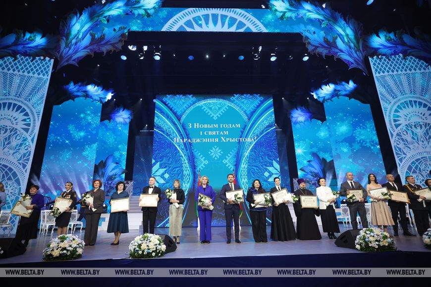 Александр Лукашенко поздравил лауреатов премии "За духовное возрождение", специальных премий деятелям культуры и искусства и премии "Белорусский спортивный Олимп" с заслуженной наградой. "И запрос на нее, и замысел торжественного мероприятия, которое мы проводим во Дворце Республики в эти светлые, праздничные дни, шли от жизни. От нашей с вами истории", - отметил Александр Лукашенко.