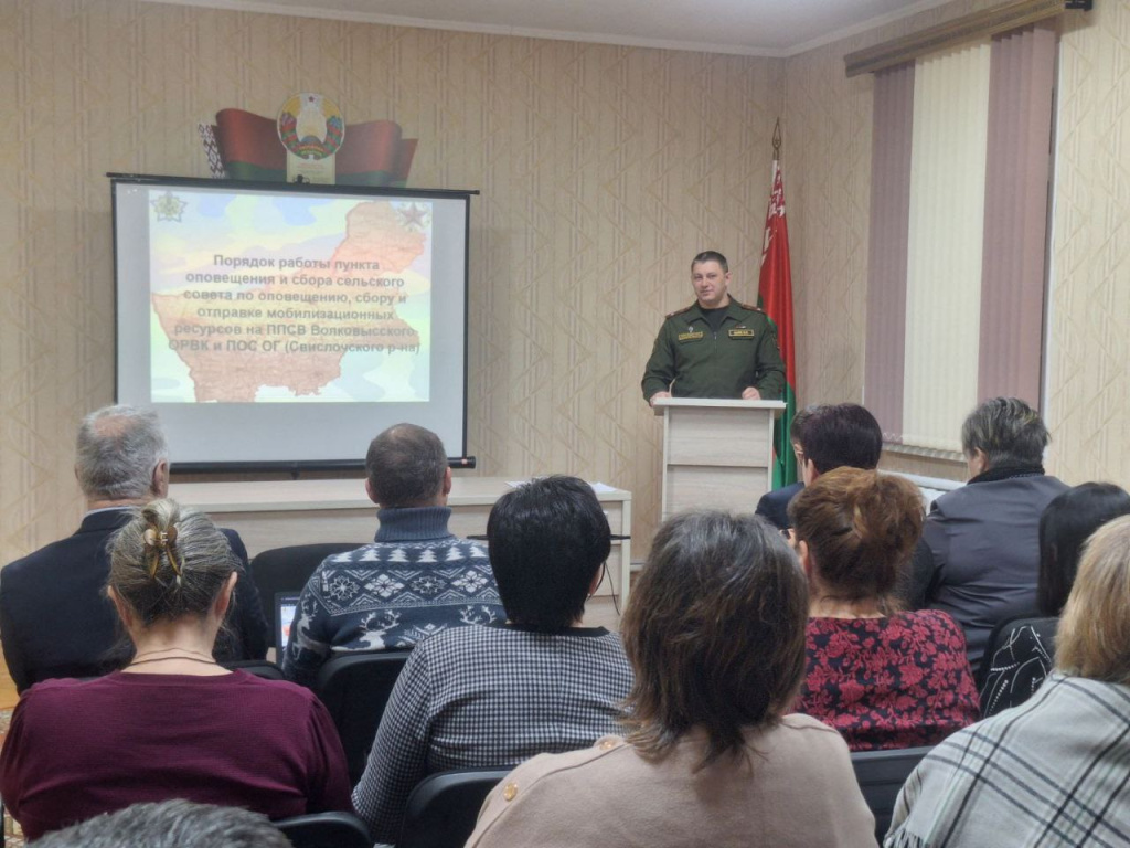 В Свислочском районе прошло показное занятие для председателей и специалистов сельских исполкомов, отвечающих за ведение воинского учета. Мероприятие состоялось на базе Свислочского сельского исполнительного комитета и было посвящено организации работы пунктов оповещения и сбора сельских советов по оповещению, сбору и отправке мобилизационных ресурсов на пункт предварительного сбора военнообязанных военного комиссариата.