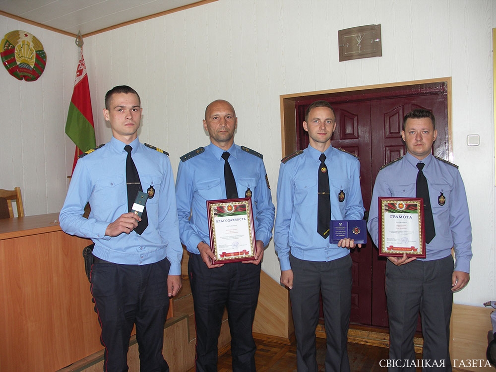 По результатам работы за полугодие четыре сотрудника поощрены. Грамотой УВД награжден начальник отделения охраны правопорядка и профилактики капитан милиции Денис Павлюченя, объявлена благодарность начальника УВД милиционеру-водителю ОДС прапорщику милиции Сергею Дульневу. Нагрудного знака «За адзнаку» удостоен старший оперуполномоченный группы по наркоконтролю и противодействию торговле людьми старший лейтенант милиции Андрей Воробей. Специальное звание «прапорщик милиции» присвоено участковому инспектору Дмитрию Трохимику.