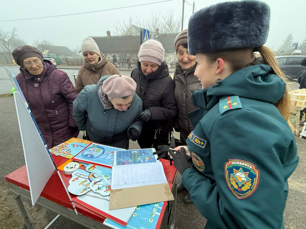 Спасатели посетили самое многолюдное место района – городской рынок в Свислочи, чтобы повысить уровень осведомленности населения о мерах предосторожности в зимний период, а также предотвратить чрезвычайные ситуации и несчастные случае в период новогодних и рождественских праздников.