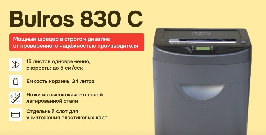 Конфиденциальность и порядок. Если у вас есть персональные данные, договоры, финансовые бумаги — нужен нормальный «контур безопасности»: уничтожители документов (шредеры).