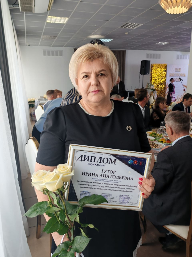 За самоотверженность и верность избранной профессии, высокие производственные показатели и личный вклад в развитие животноводческой отрасли Гродненщины награждены начальник участка в животноводстве МТФ «Качки» УП «ВМК-АГРО» Ирина Гутор, оператор машинного доения МТФ «Хоневичи» ОАО «Хоневичи» Елена Толочко, оператор по искусственному осеменению КРС МТФ «Занки-1» ОАО «Акр-Агро» Мария Филипчук, оператор по уходу за животными МТК «Олисевичи» ОАО «Хоневичи» Василий Некрашевич, животновод по выращиванию телят-молочников МТФ «Гринки» УП «ВМК-АГРО» Инна Кичкайло и животновод МТК «Хилимоновцы» УСП «Совхоз «Великосельский» Наталья Матушевская отмечены дипломами комитета по сельскому хозяйству и продовольствию Гродненского облисполкома, областной профсоюзной организации Белорусского профсоюза работников АПК и областного агропромышленного союза. Мария Филипчук дополнительно поощрена путевкой на оздоровление в санаторий «Неман».