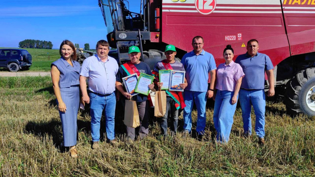 Председатель райисполкома Андрей Грицкевич, председатель райкома Белорусского профсоюза работников АПК Татьяна Борель вручили заслуженные награды экипажу-«тысячнику» сельхозпредприятия комбайнеру Вадиму Гутору и помощнику комбайнера Сергею Ковалику. Также наград были удостоены операторы КЗСВ-30 Валерий Степанюк, Александр Войтеховский и Сергей Курзяков, которые на сегодняшний день переработали 4 000 тонн зерновых культур. Хлеборобам вручили дипломы и денежные вознаграждения районной организации отраслевого профсоюза АПК.