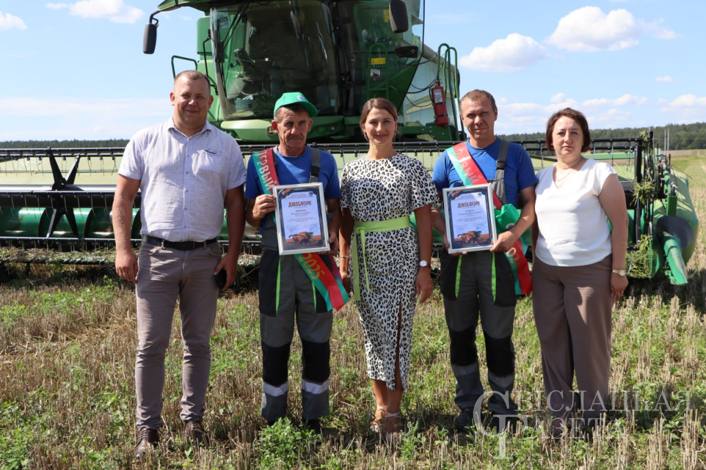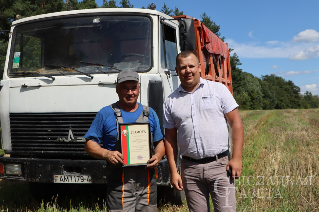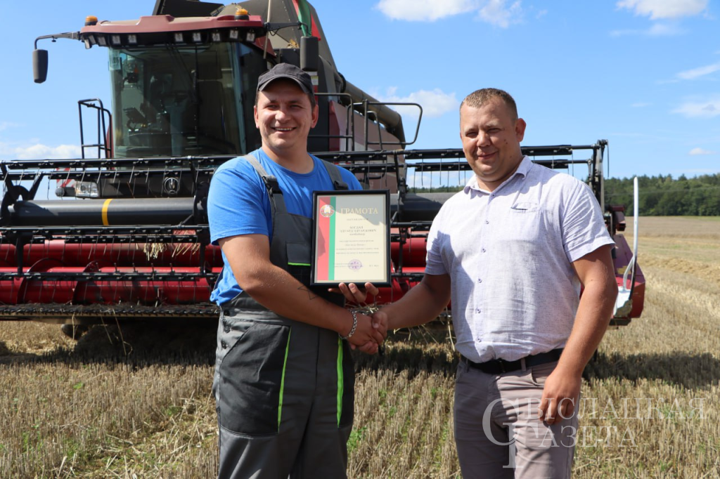 В составе экипажа, который стал победителем районного соревнования, как раз трудился один такой. Сергей Лях работает на железной дороге, а на жатве стал хорошим помощником комбайнеру Геннадию Измайлову. Передовики награждены дипломами районной организации Белорусского профсоюза работников АПК.