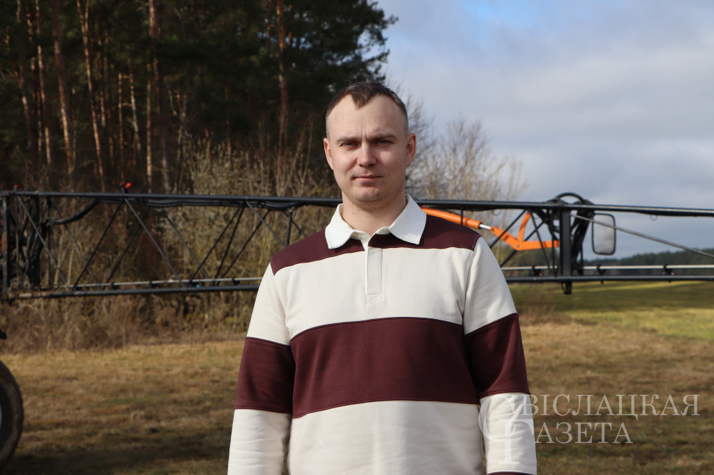 Тут же ждал своего часа МАЗ с цистерной, который подвозит на поле КАС. Им управляет опытный водитель с 42-летним стажем Казимир Лопошко. Кстати, Казимир Генрихович – водитель-ас. Он легко управляет и загрузчиком, и ГАЗ-53, и автомобилем УАЗ. Профессионала задействуют везде, где нужны его опыт и мастерство, рассказал главный инженер Илья Вербицкий.