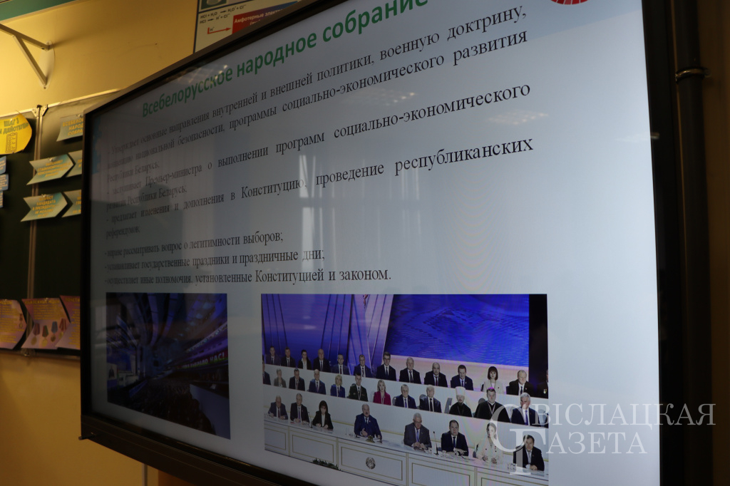 В фокусе обсуждения – Всебелорусское народное собрание, которое является высшим представительным органом. О функции и значении ВНС ребятам рассказал Александр Стельмах.