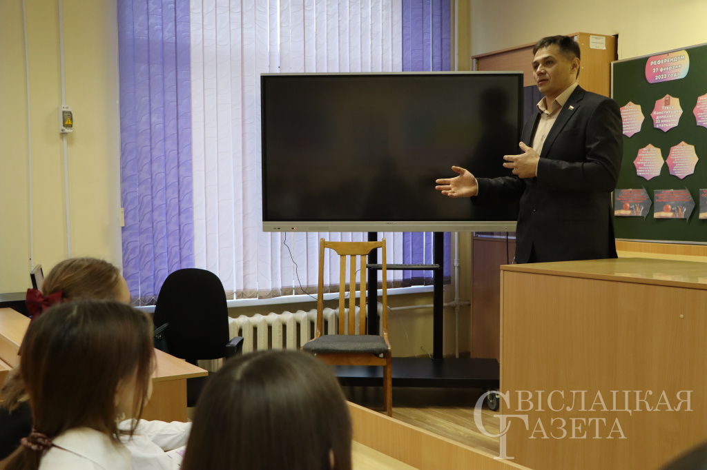 В гимназии № 1 имени П. Василенко г. Свислочи мероприятие прошло с участием делегата VII Всебелорусского народного собрания, депутата районного Совета депутатов, начальника Свислочского участка электросвязи Александра Стельмаха.