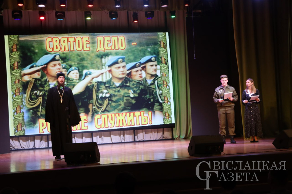 Поздравили призывников в этот волнительный день заместитель председателя райисполкома Николай Орел, начальник обособленной группы Свислочского района Виталий Цынс, председатель районной организации Белорусского союза женщин Ирина Павлюченя, настоятель храма Рождества Пресвятой Богородицы в Свислочи иерей Кирилл Кубрак, член Белорусского союза офицеров капитан второго ранга в отставке Михаил Свистун.