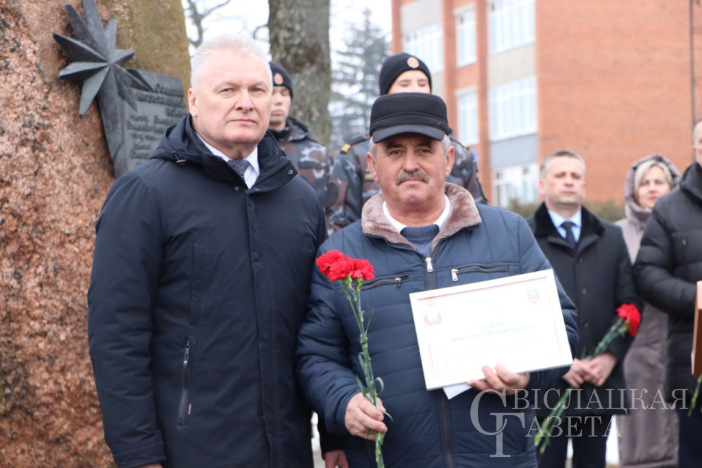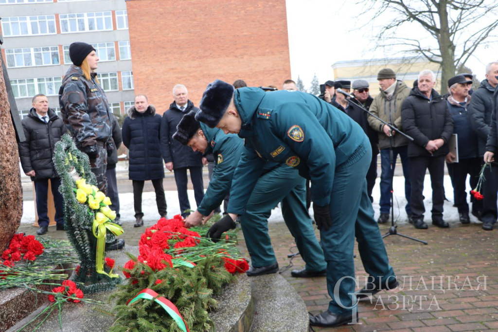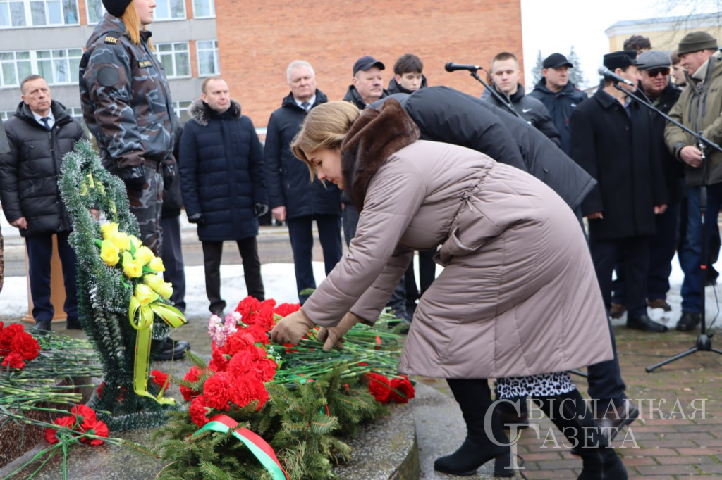 У памятного знака воинам-интернационалистам собрались руководство района, ветераны войны в Афганистане, представители трудовых коллективов, общественных объединений, школьники, в том числе члены военно-патриотического клуба «Зубр», который действует при Свислочском РОВД, учащиеся военно-патриотического класса средней школы № 2 имени Н. П. Массонова.