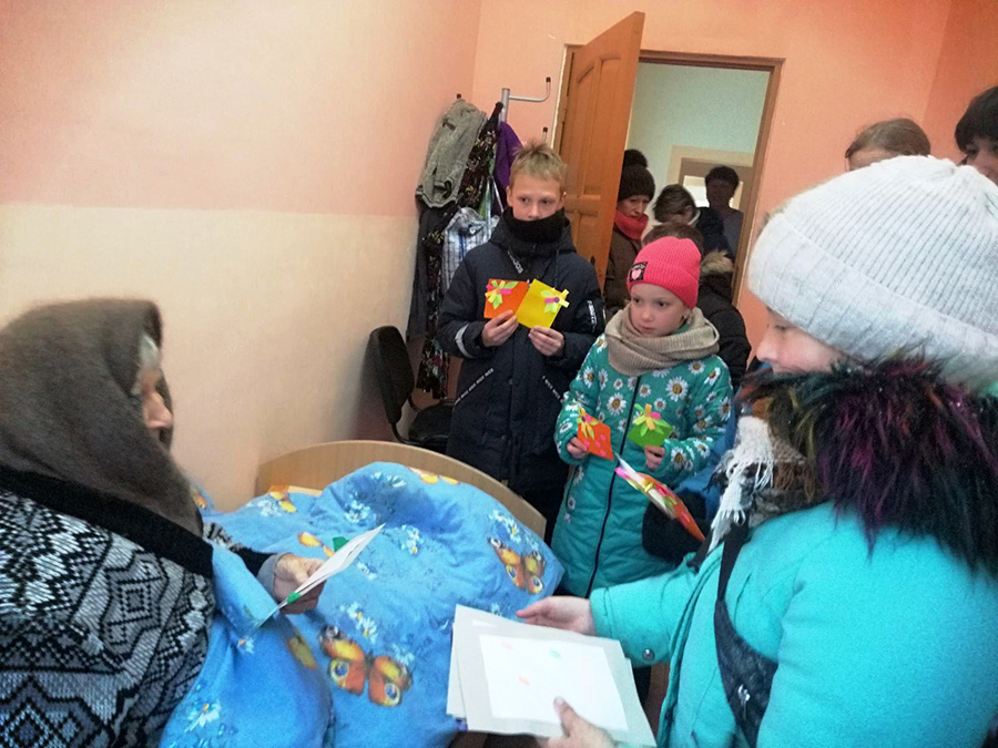 Так склаліся абставіны, што апошнім часам у сувязі з антыкавіднымі мерапрыемствамі мы віншавалі нашых даўніх сяброў са святамі завочна. Але цяпер мы змаглі ўпершыню за 2 апошнія гады сустрэцца з пастаяльцамі асабіста, убачыць іх цёплыя усмешкі, даведацца аб тым, як яны жывуць, што ў іх новага. І пастаяльцы і вучні былі вельмі рады такой сустрэчы. Ім патрэбна наша ўвага, а нам – магчымасць праявіць міласэрнасць і цеплыню у адносінах да тых, хто мае ў гэтым патрэбу.