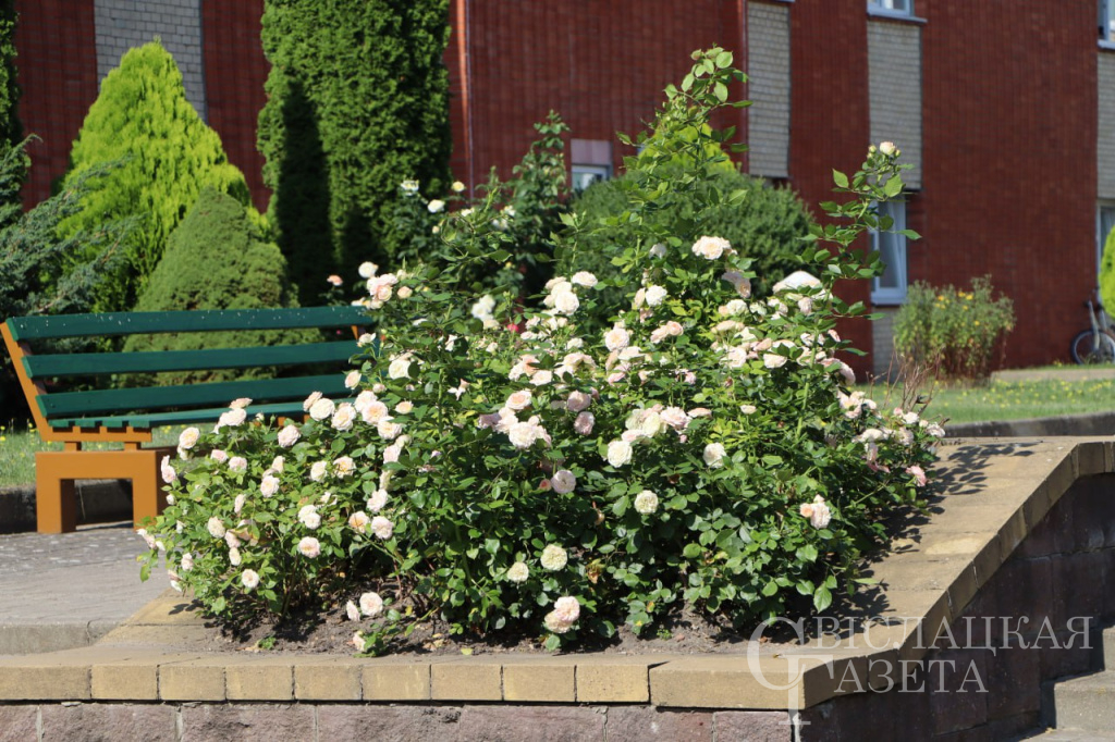 Во дворе Свислочской ЦРБ традиционно благоухают розы. Насладиться их красотой можно, присев на новые скамейки.