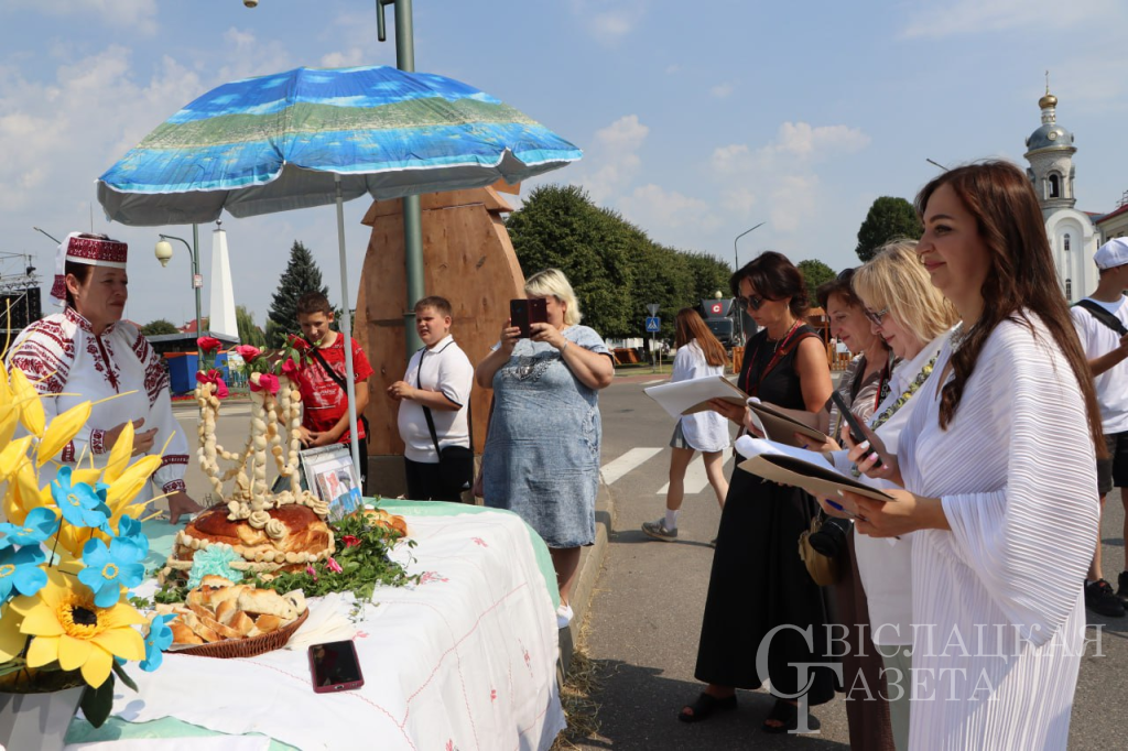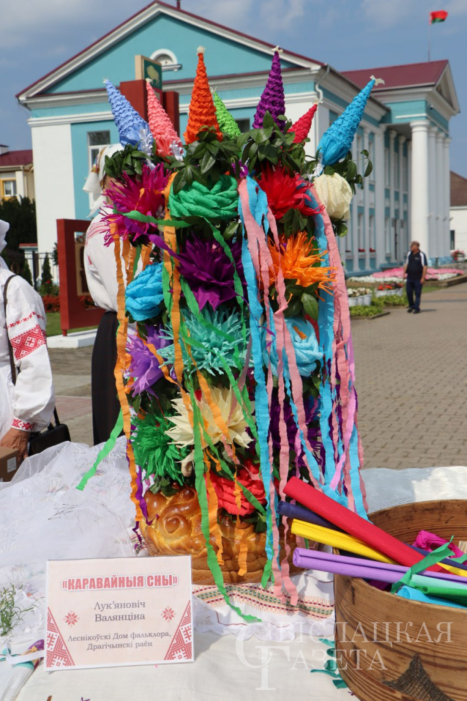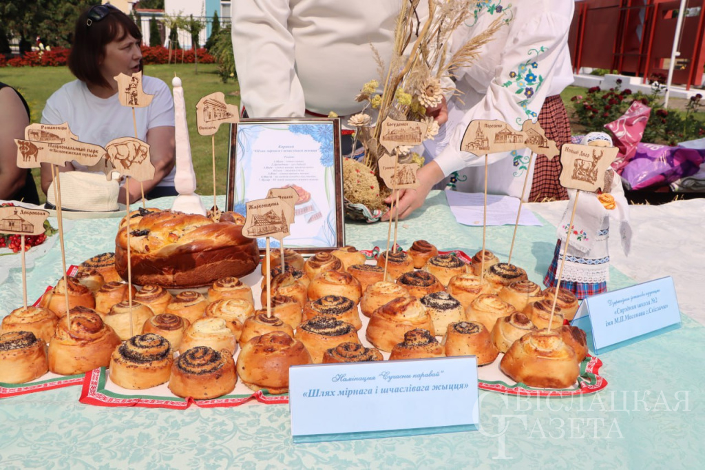 Так, Валентина Ярошук из Малориты, что в Брестской области, представила свадебный каравай. Его рецептом поделилась с ней бабушка. Когда она пекла каравай на свадьбу, всегда приговаривала: «Удайся, мой каравай, удайся». Так и Валентина всегда заговаривает. И он вырастает пышным, красивым.