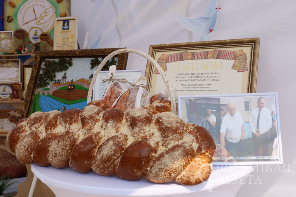 Воплотили память о войне в творчество и исполнили свою оду хлебу мастера производственного обучения средних специальных учреждений образования Гродненщины. Поразили зрителей и работы хлебопеков Белкоопсоюза. Безусловно, в богатой экспозиции Гродненского облпотребобщества центральное место было отведено свислочской плетенке «Бацькава булка».