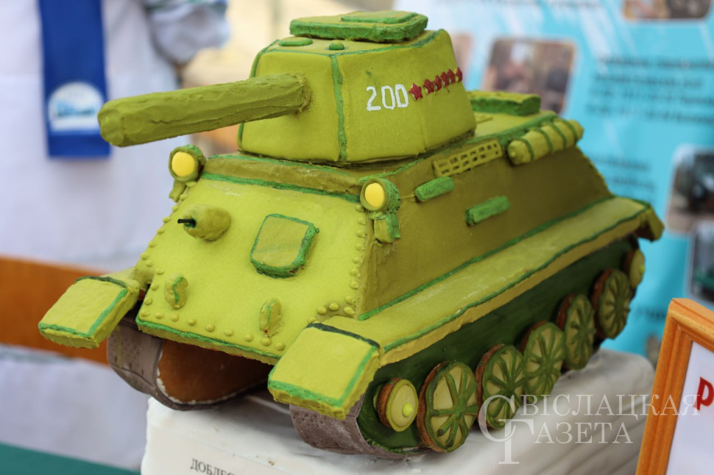 Здесь можно было увидеть настоящие произведения хлебопекарного искусства. Мастера своего дела, прибывшие из разных уголков страны, представили на суд жюри и восхищенной публики свои хлебные композиции, посвященные 80-летию Великой Победы. Партизанские землянки, памятники и мемориалы, модели танков и самолетов военных лет – чего здесь только не было.