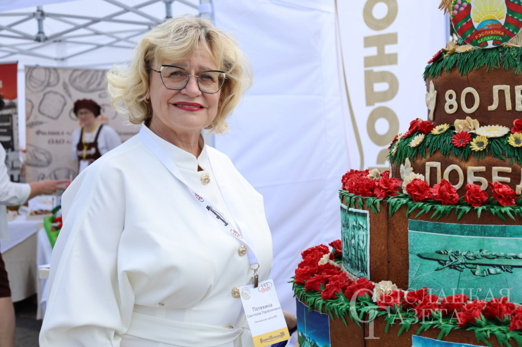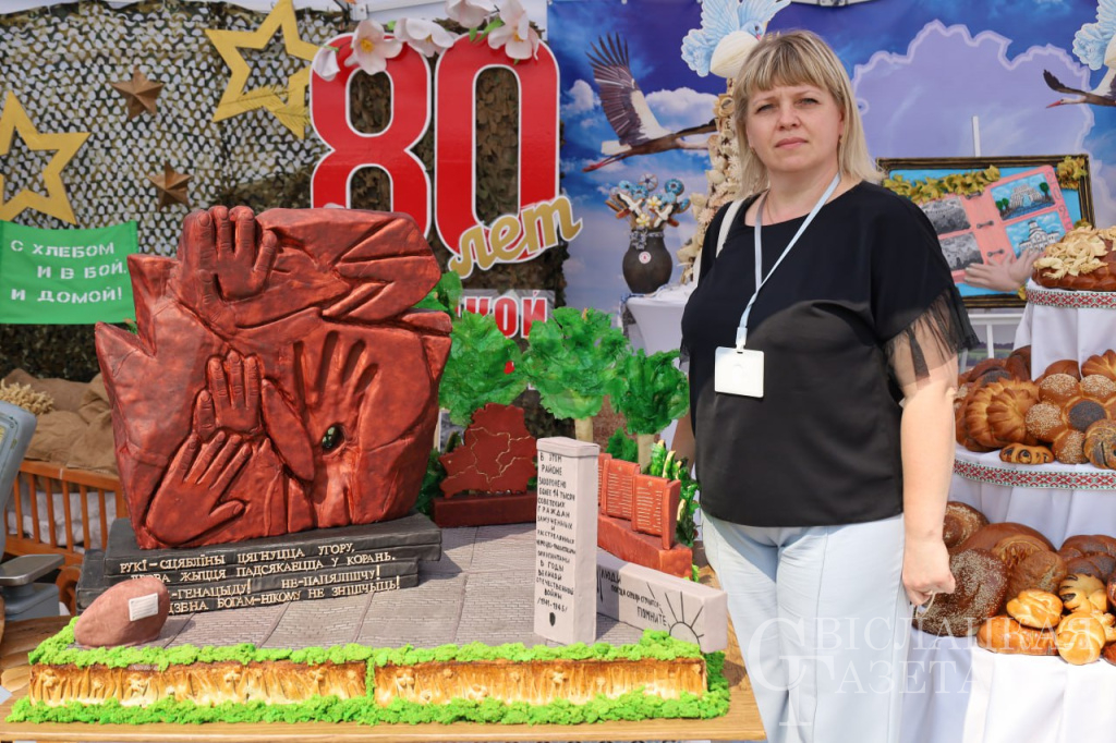 – Уже четвертый год мы с огромной радостью приезжаем на «Бацькаву булку». Очень основательно готовимся, всегда делаем большой каравай в тему фестиваля. В этом году – к юбилею Победы. Для нас данная тема очень важна. В 2025-м мы выпустили в продажу хлеб «80 лет Победы», который также привезли на дегустацию жителям и гостям Свислочи. Традиционно наши филиалы принимают участие в конкурсе хлебопеков. С каждым годом мастерство наших работников оттачивается. «Бацькава булка» способствует развитию профмастерства, – отметила заместитель генерального директора по идеологической работе и социальному развитию ОАО «Гроднохлебпром» Оксана Адамович.