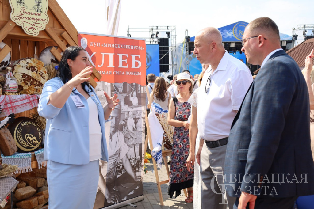 В Свислочи Пинск продемонстрировал все разнообразие своей продукции, в том числе хлеб, ставший брендом города: «Я с Пiнска» – классический и заварной, а также сувенирный «Па-першае, я з Пiнска» – с добавлением вяленой клюквы.
