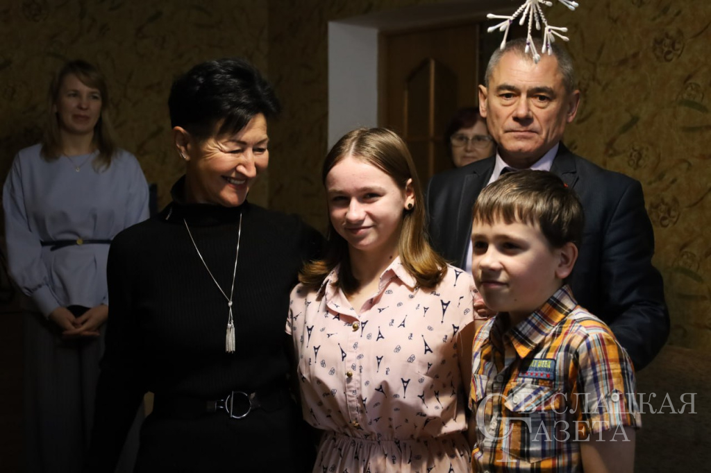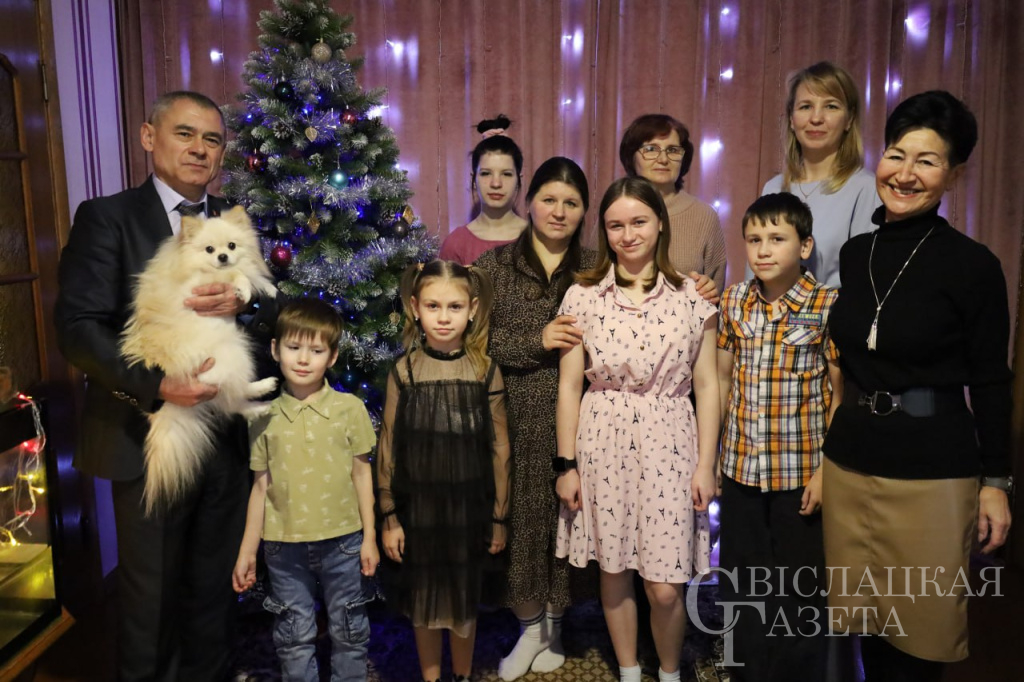 Директор СПЦ Анастасия Рублик с педагогом-психологом Мариной Стеценко и спонсорами посетили многодетную семью. Гостей радостно встречали дети: Катя, Марина, Дима, Настя и Арсений. Старшие немного смущались, зато шестилетний Арсений показал все, на что был способен. Охотно прочитал стихи про Дедушку Мороза, а потом спел Государственный гимн. Его подхватили все гости. Маленького Арсения похвалили и назвали настоящим патриотом. У мальчишки светились от гордости глаза, и он охотно рассказывал, какая у них замечательная мама, пригласил посмотреть наряженную елочку, где все вместе и сфотографировались на память.