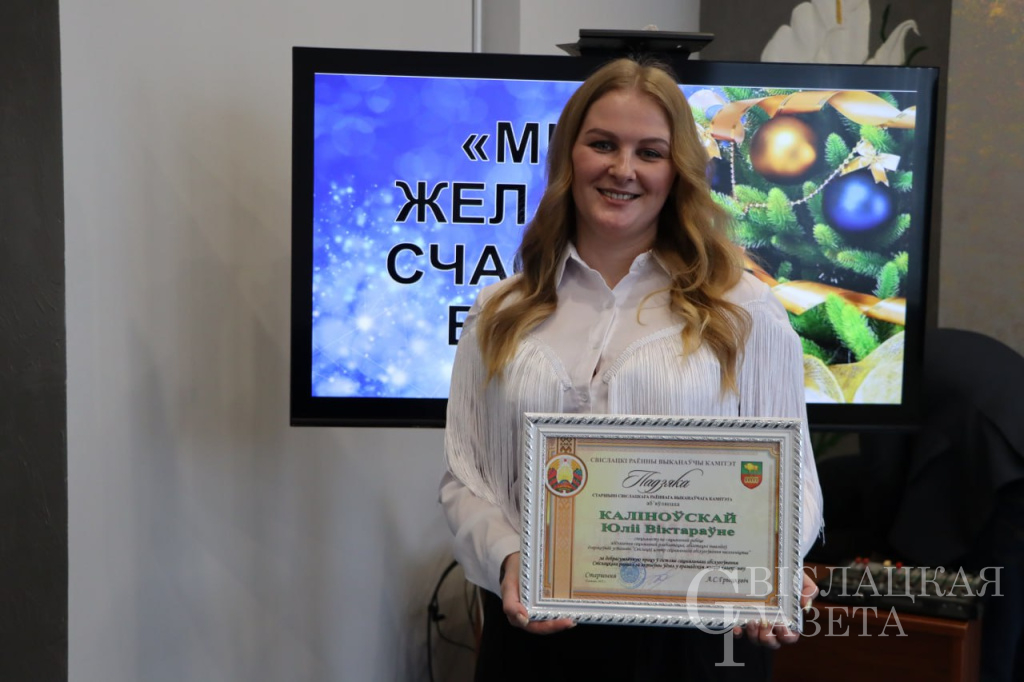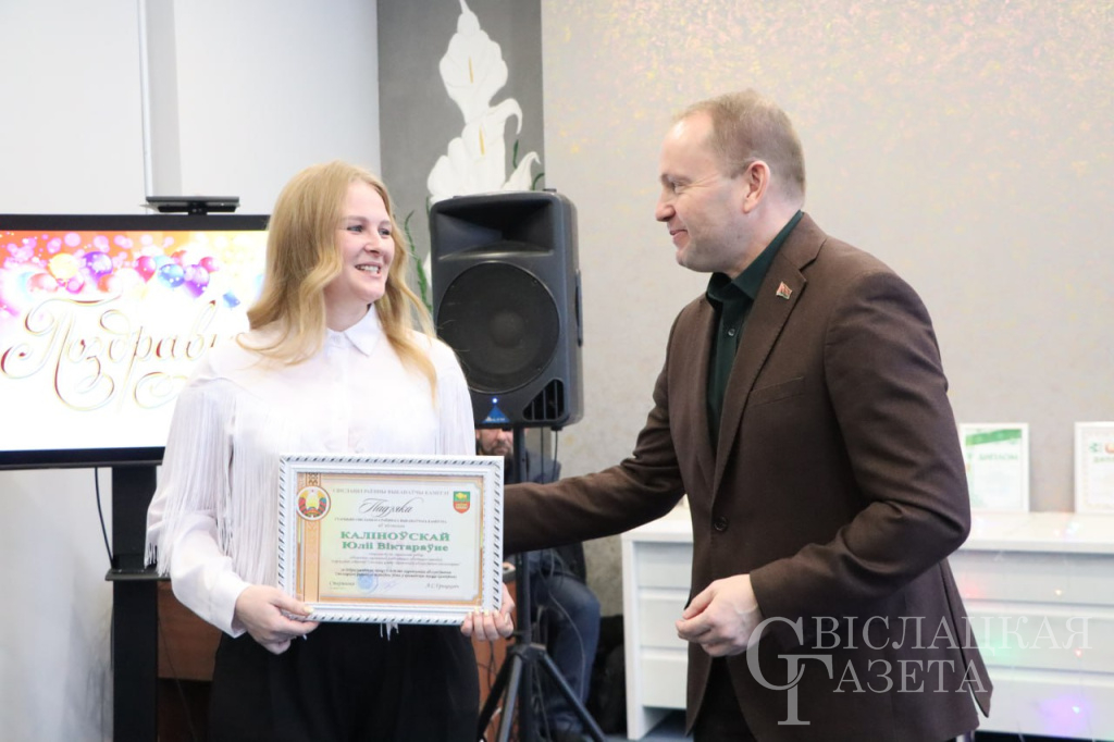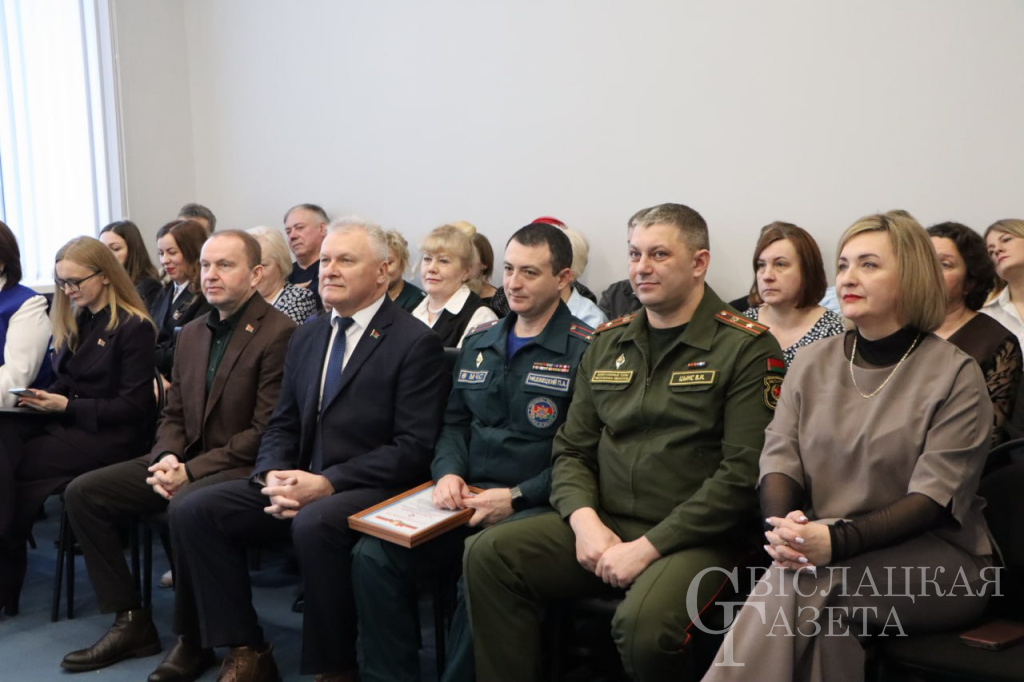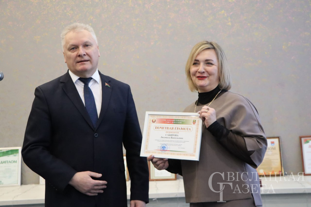 За труд – награды. Благодарность председателя райисполкома за добросовестный труд в системе социального обслуживания Свислоччины и активное участие в общественной жизни коллектива объявлена специалисту по социальной работе отделения социальной реабилитации, абилитации инвалидов Юлии Калиновской. Специалист по социальной работе филиала в г.п. Порозово Людмила Сабирова награждена Почетной грамотой районного Совета депутатов – за высокий профессионализм и активное участие в общественной жизни района. Благодарность начальника районного отдела по чрезвычайным ситуациям Павла Недвецкого за многолетнее плодотворное сотрудничество в формировании культуры безопасности и активное участие в мероприятиях, проводимых райотделом, объявлена специалистам отделения первичного приема, анализа, информирования и прогнозирования Елене Балейко и Наталье Андрушко.