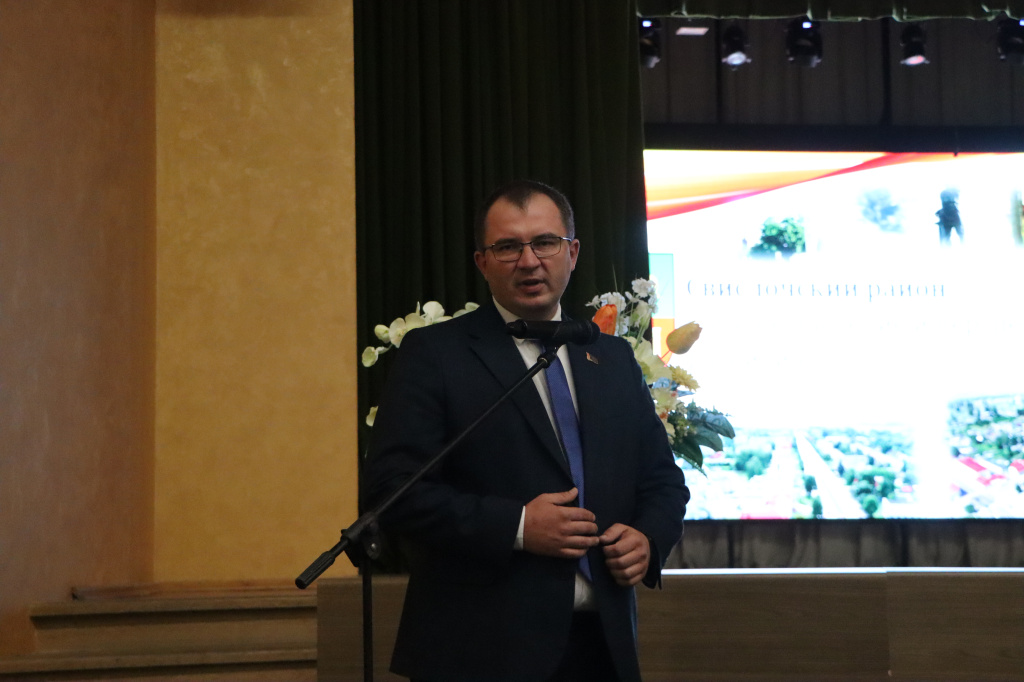 Тепло поприветствовал представителей масс-медиа на свислочской земле председатель райисполкома Андрей Грицкевич. Он рассказал о перспективах развития района, его уникальности и богатой истории.