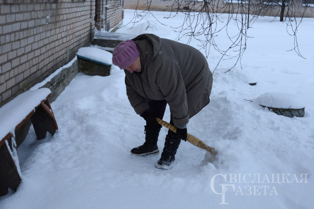 По улице Пограничников от частного дома до проезжей части расчищала дорожку Тамара Нестерик.