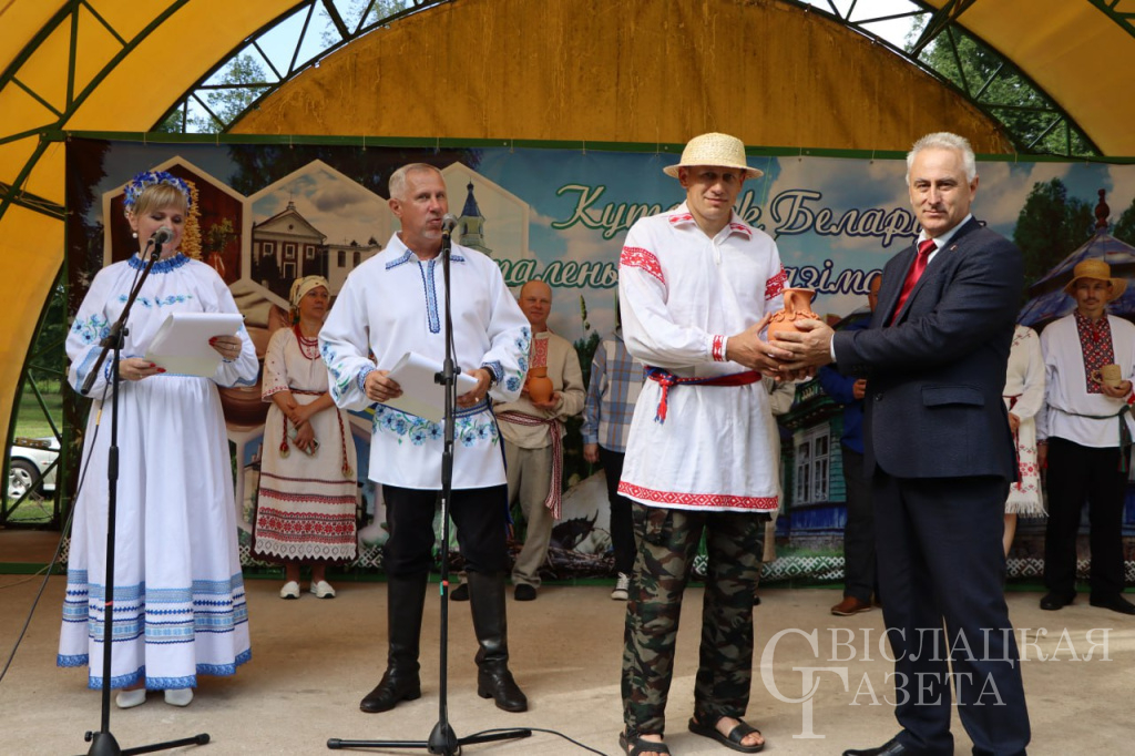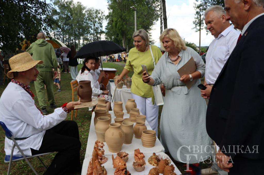 Падчас свята было шмат прыемных, памятных момантаў. Так, пераможца конкурсу на лепшы ганчарны выраб 2024 года, майстар з Ваўкавыска Раман Дзямянчык, перадаў у музейны пакой свой збанок. З рук майстра – у рукі гісторыі.