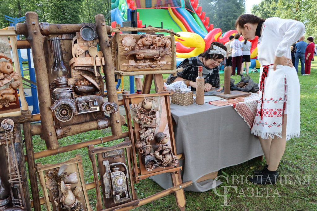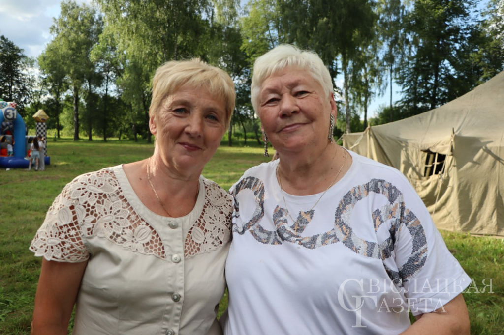 Поразаўскія гаспадынькі запрашалі паспрабаваць сваіх смакоццяў, прыгатаваных з пылу з жару, пах ад іх разносіўся па ўсёй тэрыторыі парка.