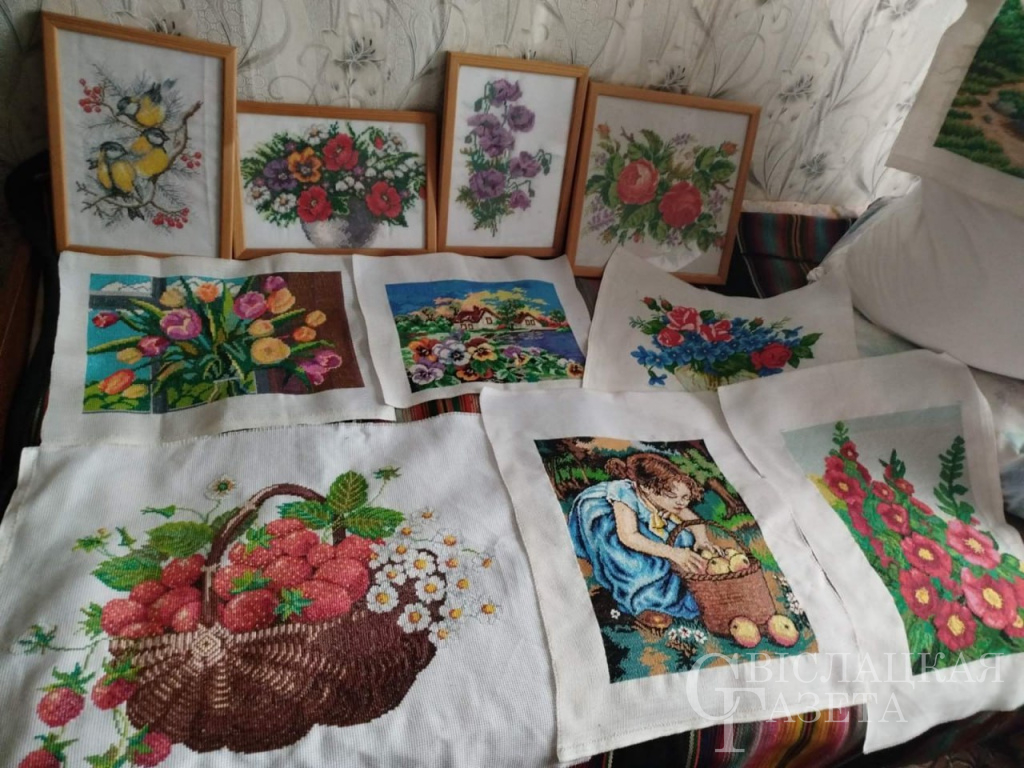 – У нас была вельмі добрая сям’я, Іван аказаўся клапатлівым і ўважлівым мужам, цудоўным бацькам. Мы з ім пражылі 37 гадоў у згодзе, узаемаразуменні. А ў 2015 годзе майго Івана не стала. Гэтая страта стала для мяне такім ударам, што я і па сённяшні дзень не магу дайсці да сябе. Як толькі маё сэрца тады вытрымала? – дзеліцца ўспамінамі Алена Васільеўна. – Свой боль я вышыўкай лячыла. Амаль не выпускала з рук іголку. І днём і ноччу вышывала, вышывала… Я не толькі па схемах вышываю, а і сама прыдумляю ўзоры, малюнкі. Поўнасцю аддалася гэтай справе. За тыдзень атрымліваецца карціна, а часам і хутчэй. Іх у мяне ўжо больш за пяцьдзясят. Найбольш люблю вышываць кветкі, прыроду, іконы.