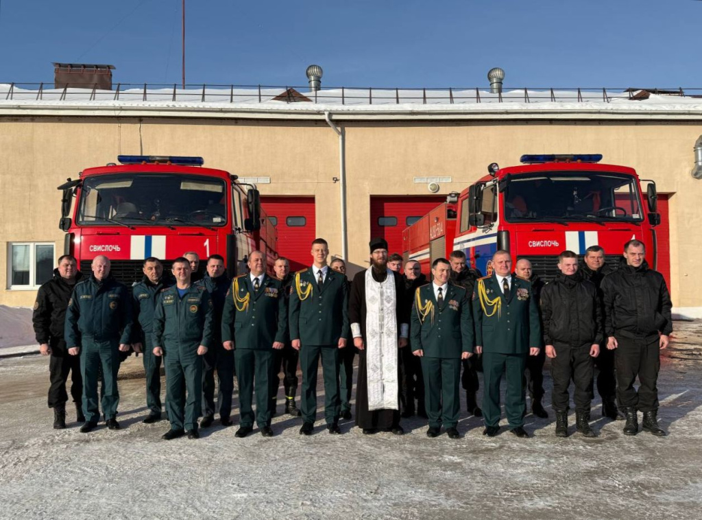 Настоятель храма Рождества Пресвятой Богородицы г. Свислочи Кирилл Кубрак благословил личный состав отдела и освятил технику спасателей, пожелав им с честью нести звание работников органов и подразделений по чрезвычайным ситуациям.