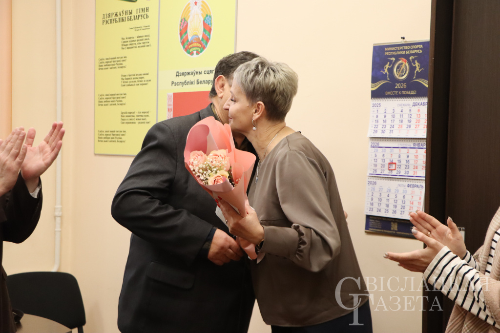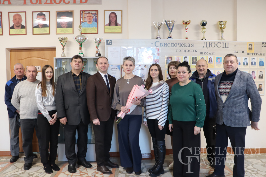 С юбилеем поздравили тренера-преподавателя Свислочской ДЮСШ Ларису Эйсмонт. В торжественной обстановке теплые слова прозвучали от заместителя председателя райисполкома Юрия Куликова, коллективов детско-юношеской спортивной школы и сектора спорта райисполкома.