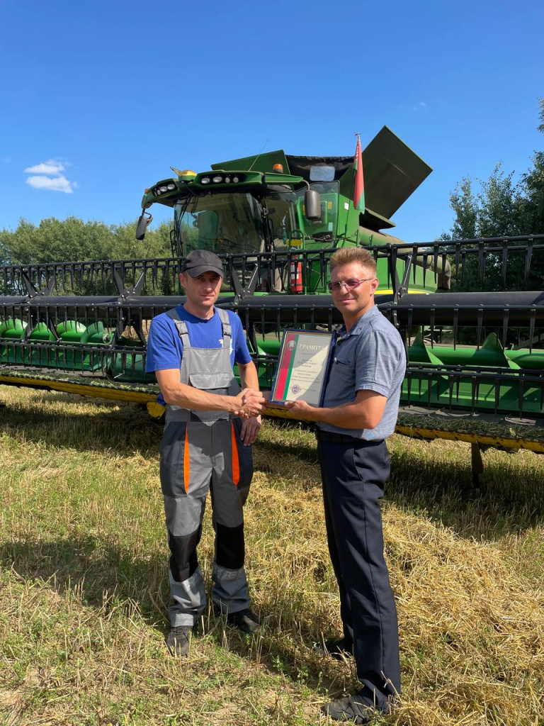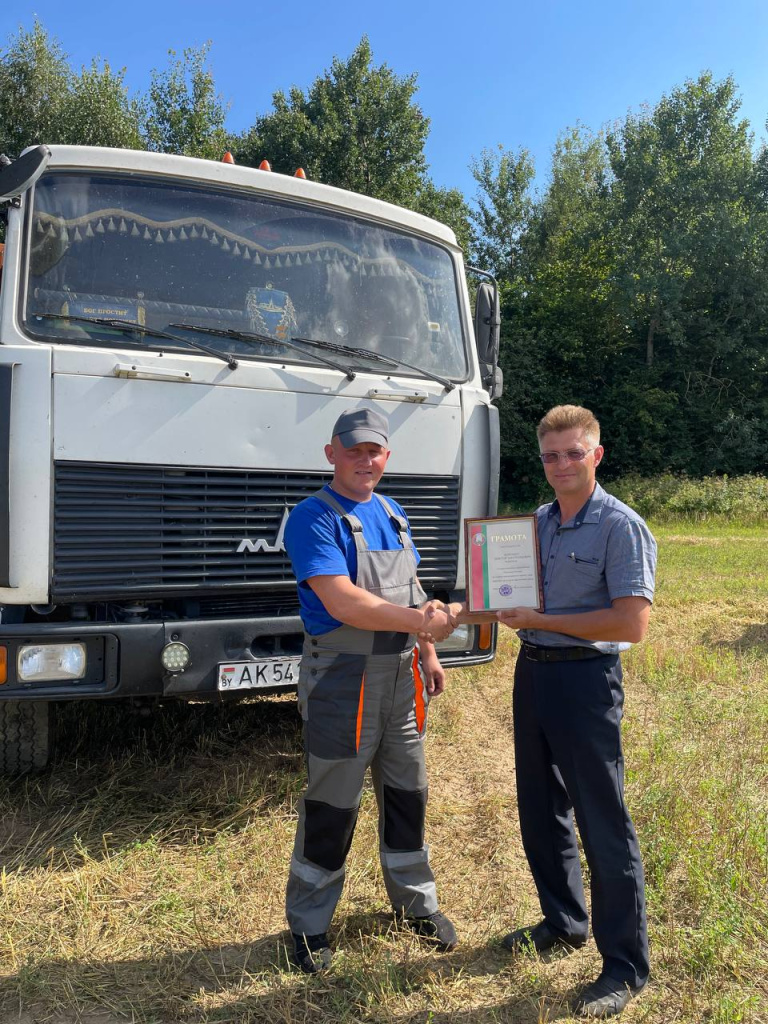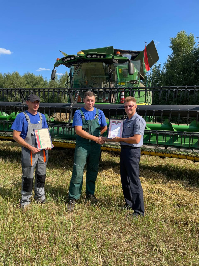 Совсем недавно чествовали экипаж в составе старшего комбайнера Павла Денисика и комбайнера Эдуарда Богдана и водителя Виктора Коренко из КСУП «Ханчицы-Неман», которые первыми в районе перешагнули тысячный рубеж на жатве. Сегодня есть повод опять написать о передовиках уборочной кампании. На счету хлеборобов хозяйства уже более 2000 тонн намолоченного и перевезенного зерна.