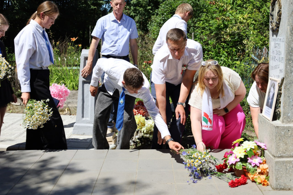 В митинге приняли участие заместитель председателя райисполкома, председатель районной организации РОО «Белая Русь» Николай Орел, ведущий специалист организации Анастасия Тарасевич, председатель Вердомичского сельисполкома Елена Соловей, директор Вердомичской школы Олег Грунюшкин, педагоги и школьники.
