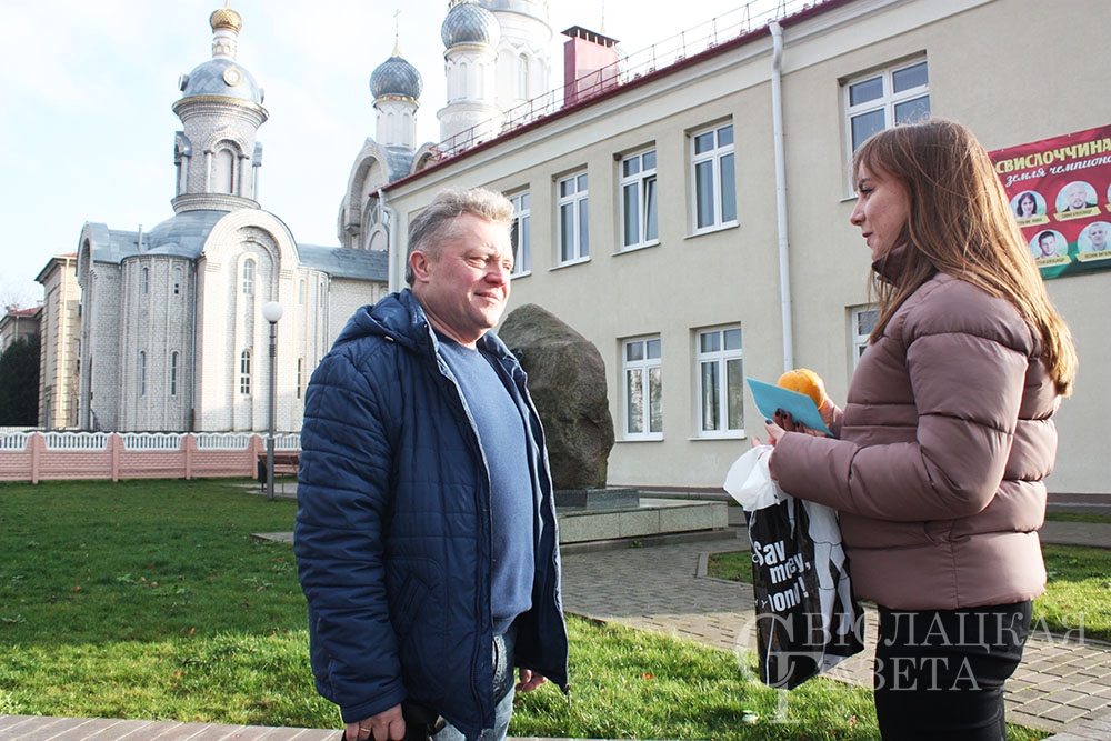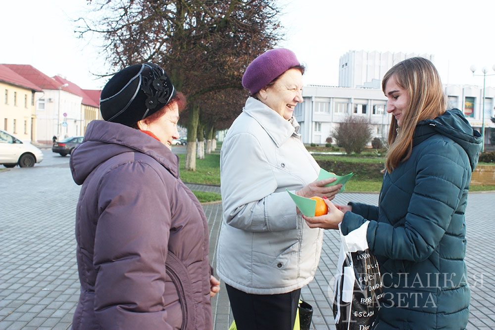 По уже сложившейся доброй традиции работники редакции вышли на улицы города, чтобы поделиться своим радостным настроением и вручить свислочанам открытки с рецептами счастья от районной газеты, а также зарядить их витаминами и солнечным, ярким настроением, вручая апельсины. Искренние улыбки и добрые слова – это лучшие подарки, которые мы получали в ответ. Ведь это так ценно, когда, работая для людей, ты получаешь положительную эмоциональную отдачу.