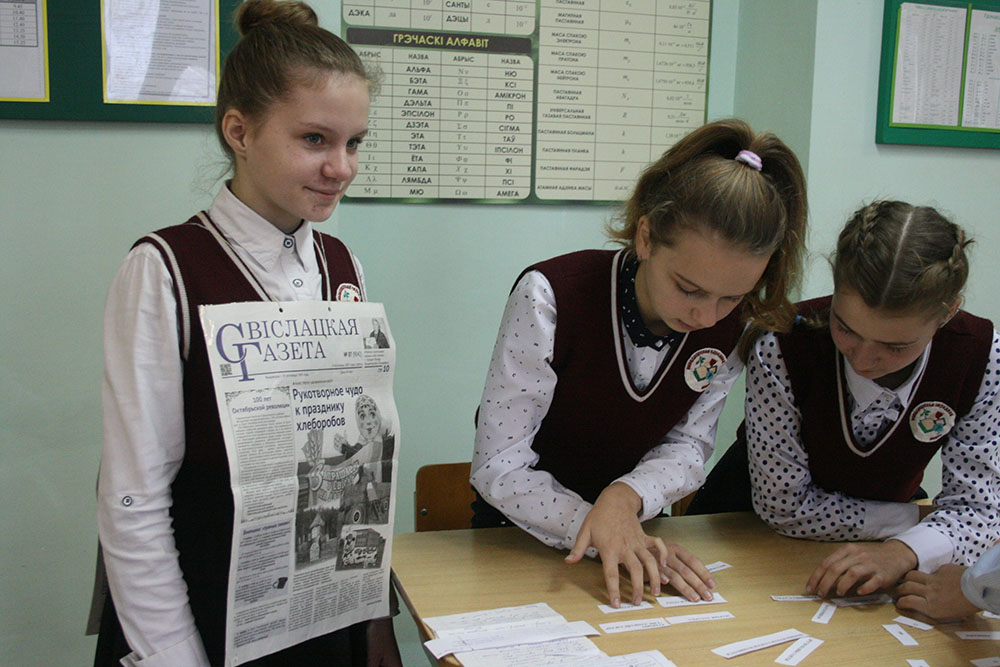 Тэматычная інфармацыйная гадзіна «Свіслацкай газеце» – 75 гадоў» прайшла напярэдадні свята. Ад патрапіўшага на ўрок госця – Газеты – навучэнцы даведаліся пра гісторыю раёнкі, яе складаны лёс у гады Вялікай Айчыннай вайны, а таксама розныя цікавыя звесткі.