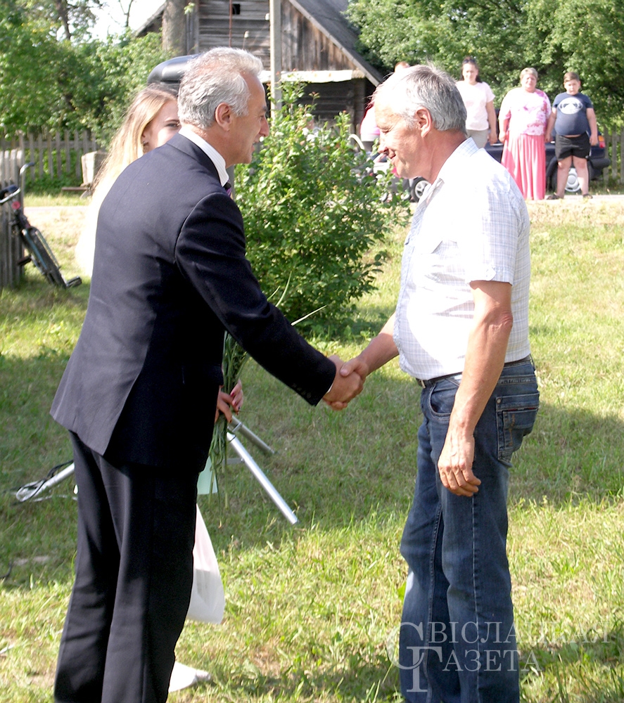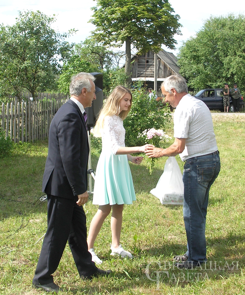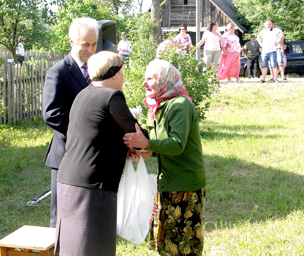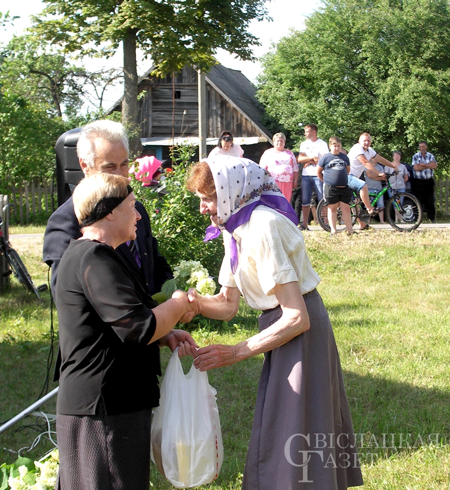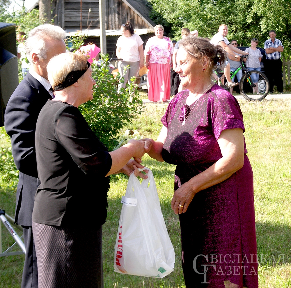 І, вядома ж, памятныя падарункі і кветкі. На імправізаванай сцэне іх уручылі старасце вёскі, найстарэйшаму і самаму маленькаму жыхарам, юбілярам і імяніннікам. Апладысментамі сустракалі і праводзілі людзей, якія ўсё сваё свядомае жыццё аддалі сельскай гаспадарцы. На доўгую памяць ім таксама паднеслі падарункі.