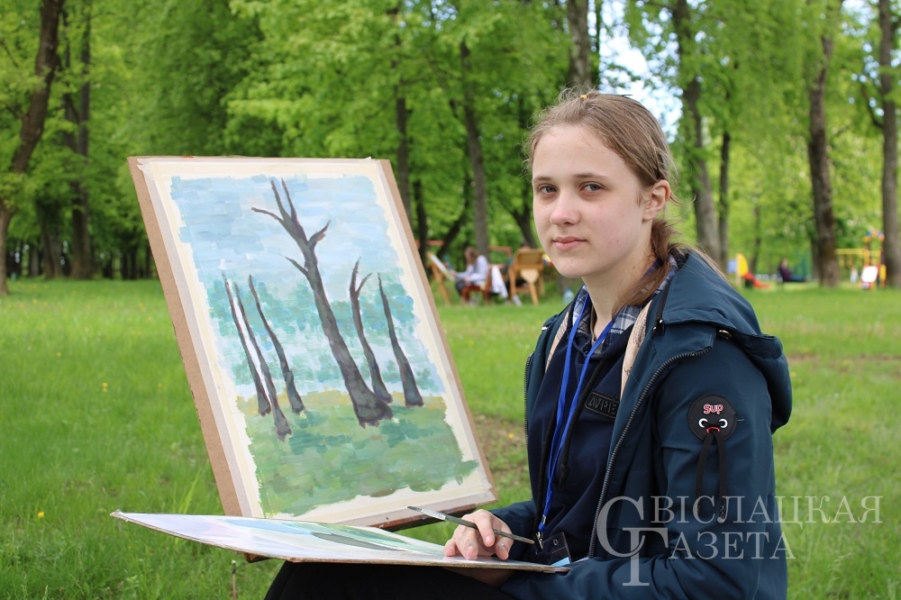 – Рисованием я занимаюсь второй год. Уже успела поучаствовать в нескольких конкурсах и получить свои первые награды. Надеюсь, что из Свислочи тоже уеду не с пустыми руками. Свислочь – очень красивый городок. Мне он очень понравился. Конечно, больше всего положительных эмоций у меня вызвал свислочский силач – «Асілак», а еще понравилось на открытии пленэра выступление ансамбля скрипачей.