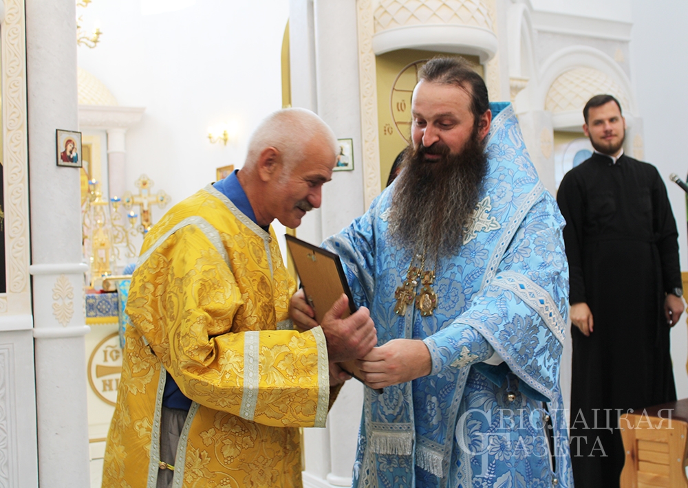 За труды во славу святой Церкви епархиальной медалью Гродненской епархии Белорусской Православной Церкви “Коложская одигитрия” 3-й степени награждена казначей храма Рождества Пресвятой Богородицы Людмила Роговая, архиерейскими грамотами награждены регент Алла Лукша и пономарь храма Адам Гринко.
