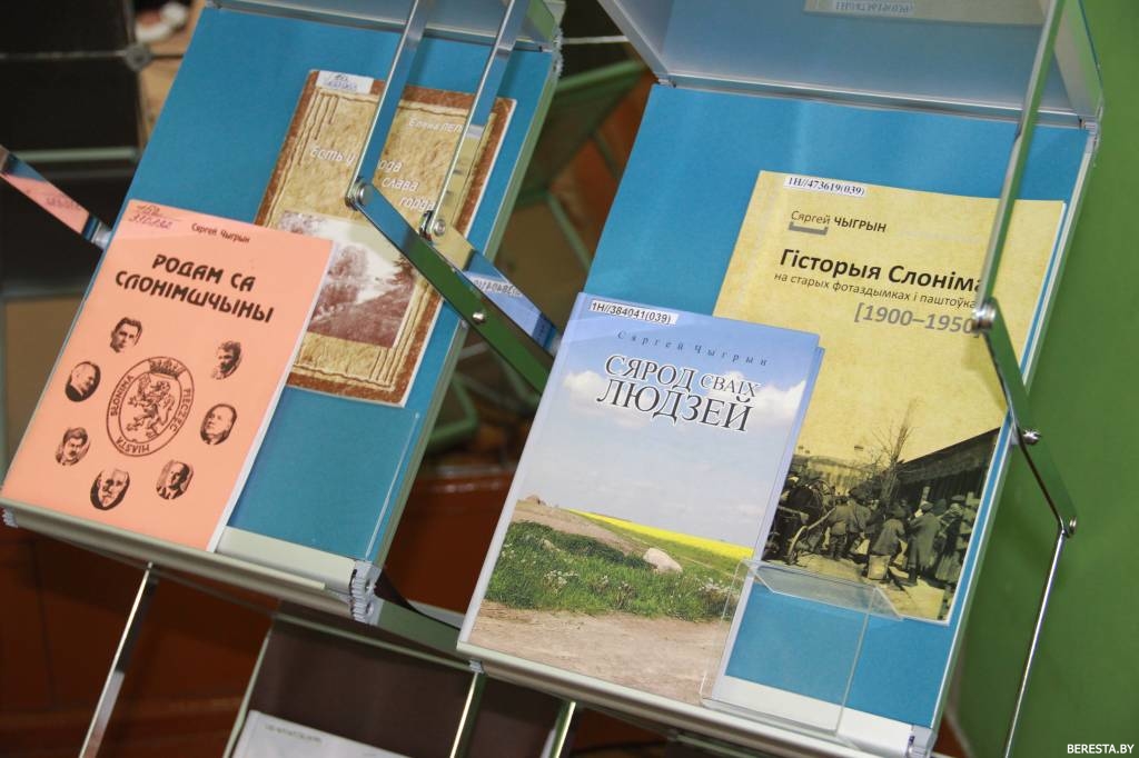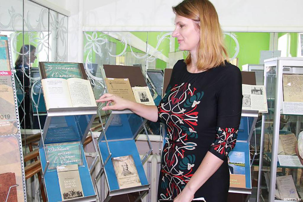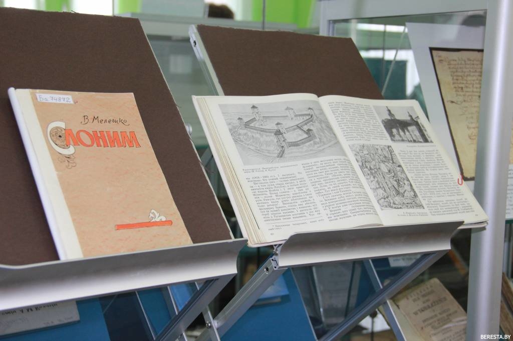 У экспазіцыі прадстаўлены кнігі, выдадзеныя ў Слоніме, асобнікі з мясцовых кнігазбораў, выданні і дакументальныя матэрыялы, звязаныя з гісторыяй краю і яго знакамітымі ўражэнцамі. Да прыкладу, сярод экспанатаў знаходзіцца выданне Іпацьеўскага летапісу, у якім упершыню ўзгадваецца Слонім, і на сёняшні дзень з’яўляецца афіцыйнай падставай да кропкі адліку ўзроста Слоніма. Прадстаўлены матэрыялы, прысвечаныя Льву Сапегу, лёс якога непрырыўна звязаны з Слонімам, вядомаму дзеячу Міхаілу Казіміру Агінскаму. Шэраг выданняў належаць нястомнаму даследчыку Слонімшчыны Сяргею Чыгрыну, які распавядае пра гісторыю і культуру Слоніма, адметнасці наваколля і пра людзей, што нарадзіліся на слонімскай зямлі.